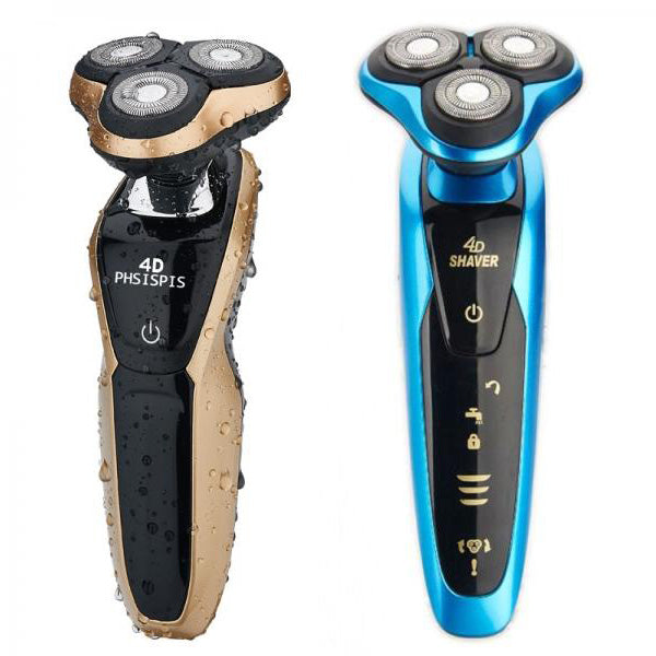 Upgrade 4D Floating Head IPX7 Electric Washable Shaver Razor Blue/Golden USB Charging
