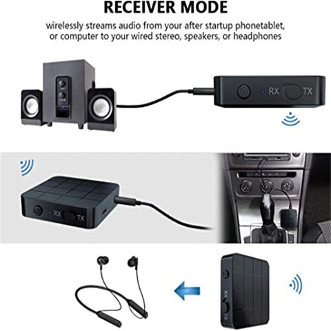 2.Transmitter mode:wirelessly streams audio from your non-Bluetooth TV, home stereo system, or CD player to your Bluetooth headphones or speakers