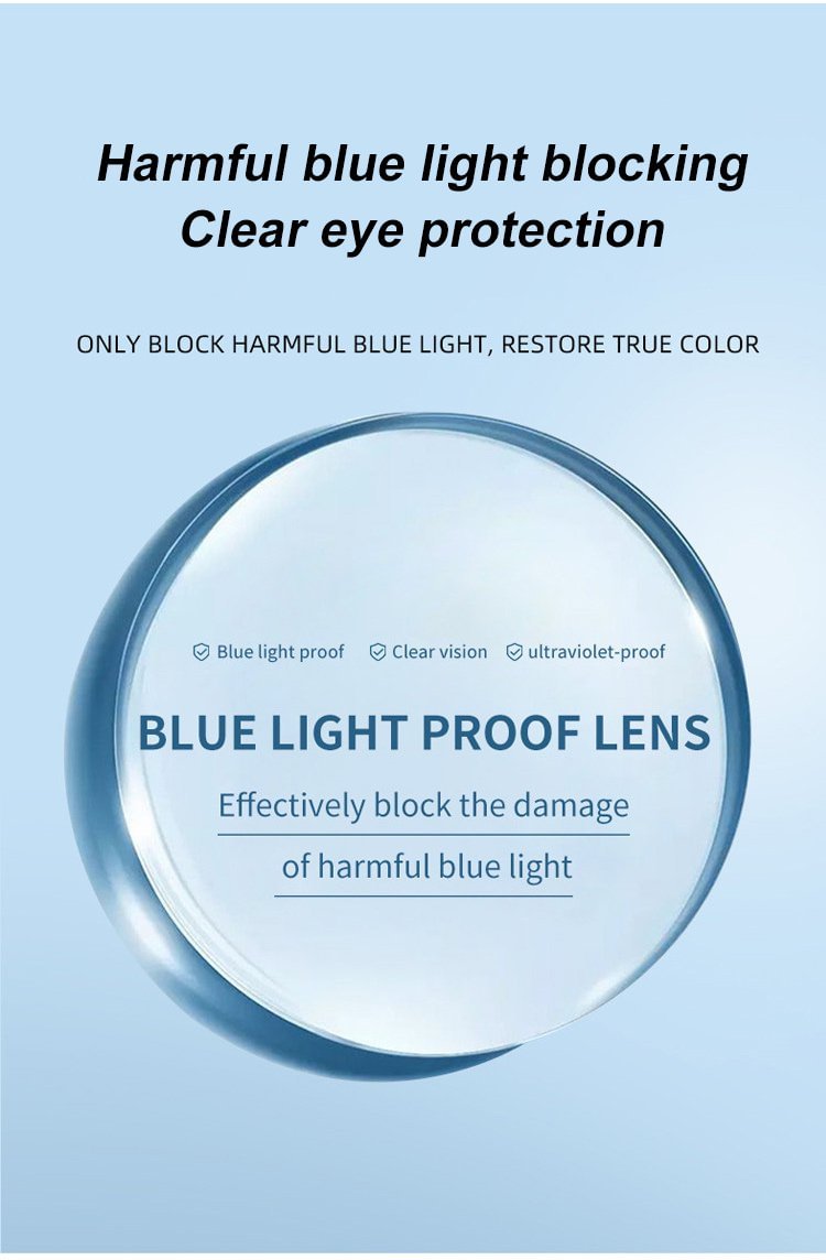 Reduce the damage to the eyes: Anti-blue light glasses can reduce harmful blue light from electronic devices such as computers and mobile phones, protect the eyes, and avoid the damage of ultraviolet rays to the eyes.