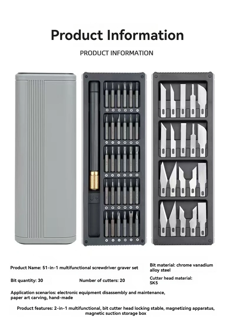 【50 in 1 Mini Precision Screwdriver Set】 Includes 30 magnetic bits and 20 Carving Knife Set. Great value! This precision screwdriver set offers a wide range of bits in a compact, sturdy case. Ideal for all your repair needs.