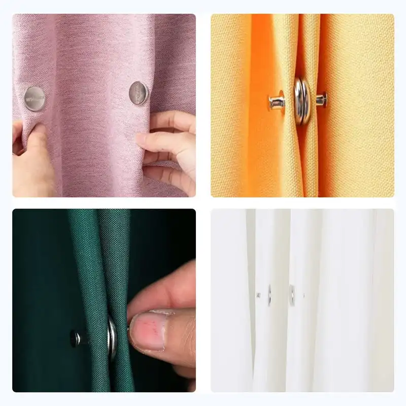 STRONG MAGNET】Curtain magnet button is made of neodymium-iron-boron alloy, unique pin-button design allows it to be firmly attached to the curtains, will not slide and fall off.