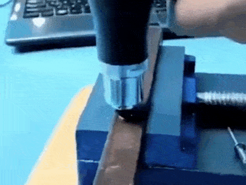 ✅Turn on the reverse rotation function of the drill until you hear the sound of “dadada”, then put the rivet of the appropriate size.