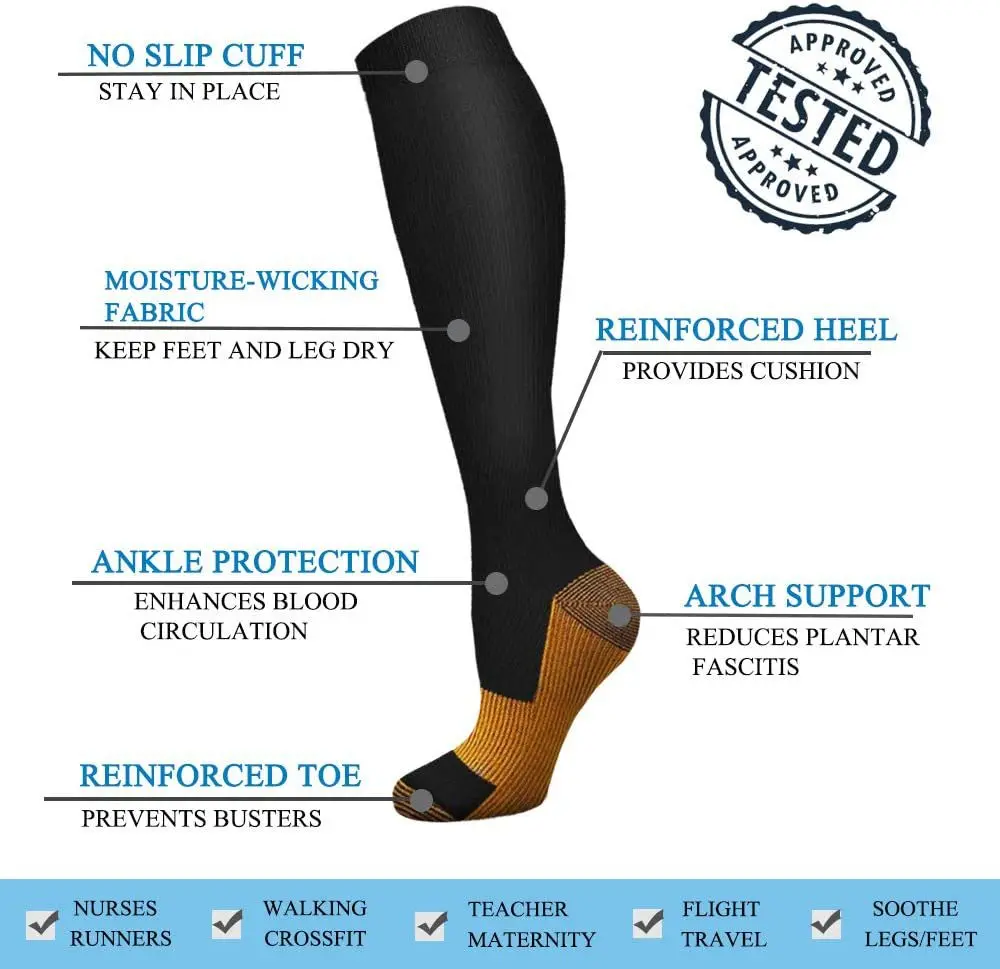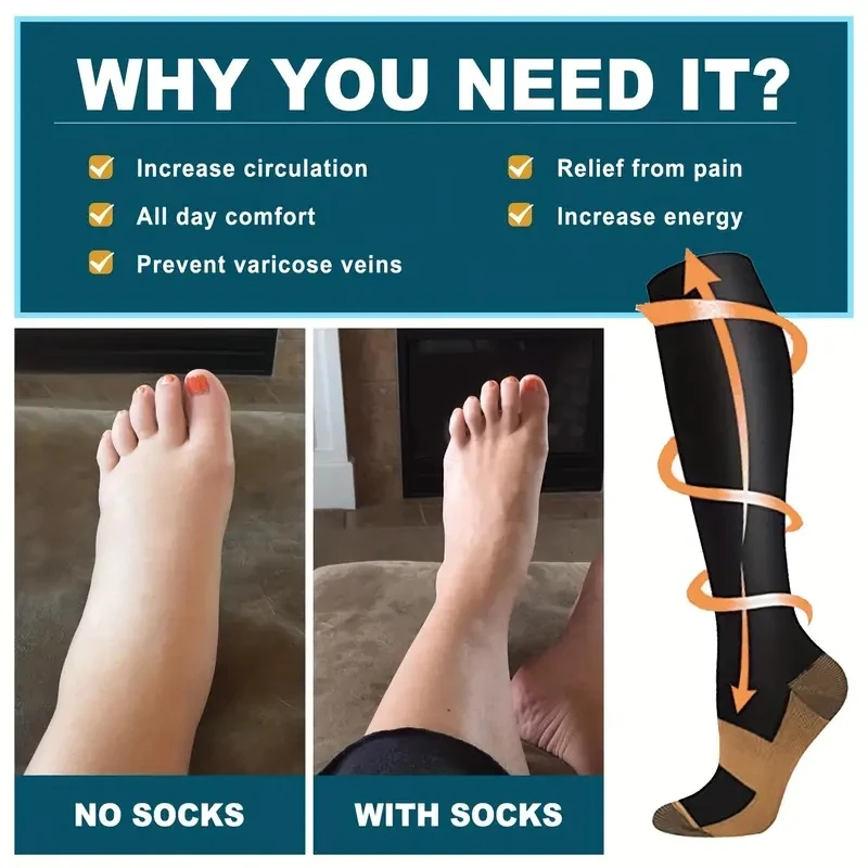 1.Made of polyester and nylon, this pair of compression socks is elastic, smooth, heat resistant, corrosion-resistant, and durable