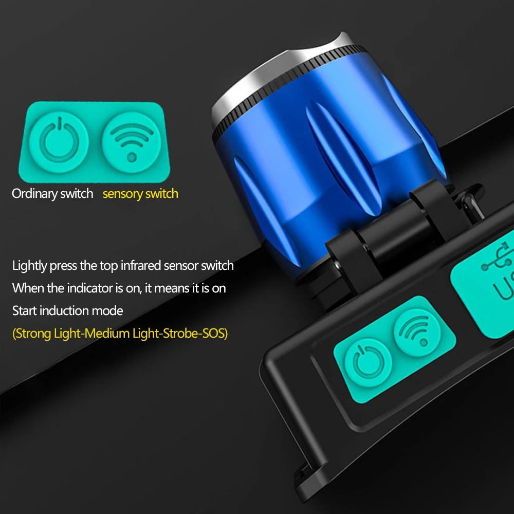 The headlamp includes 4 lighting modes: Full Brightness, Low Brightness, strobe, SOS,full UV and White light. You can change lighting mode through half-deep the bottom button to meet your requirements.