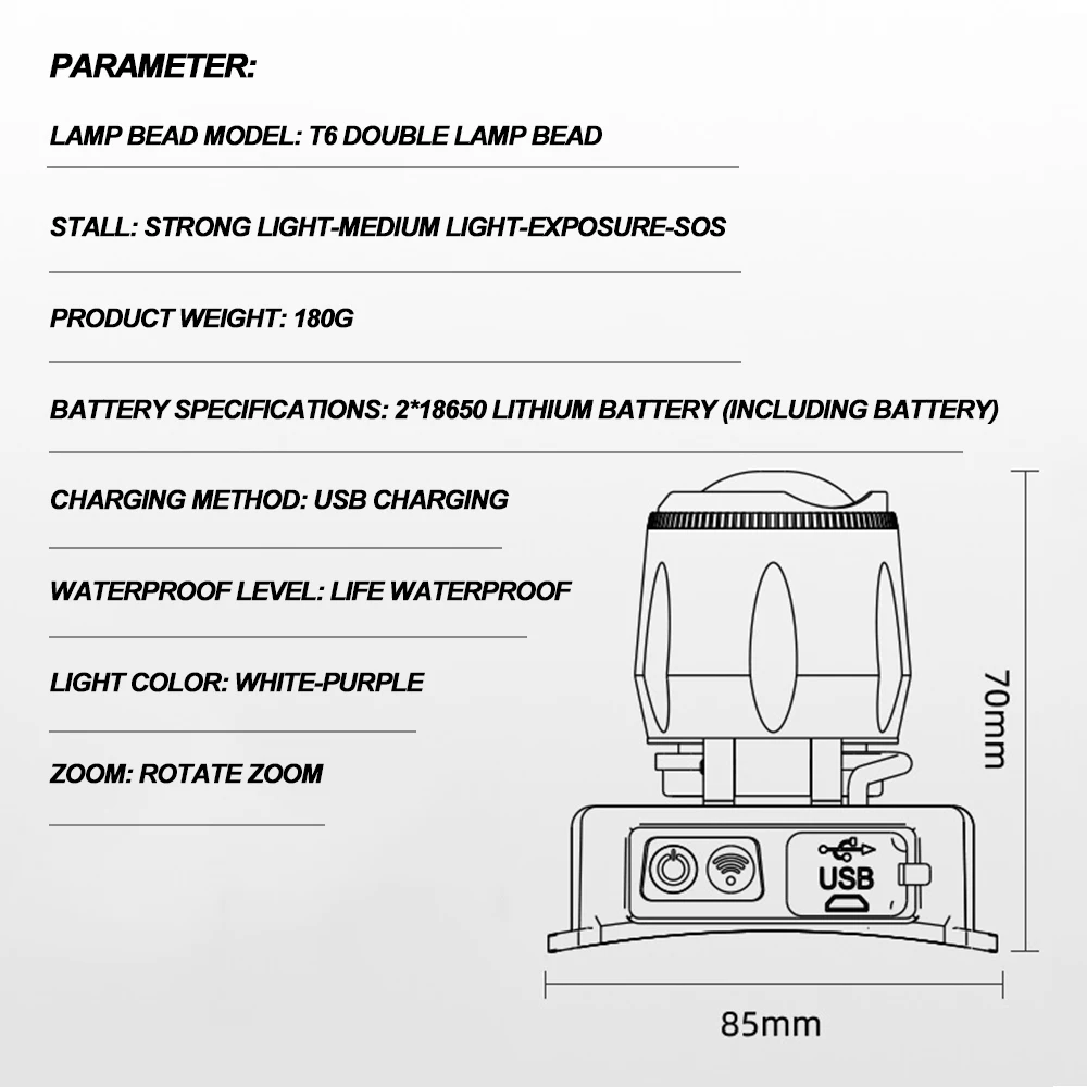 2in1 Ultraviolet Tactical headlamp with 4 Light Modes