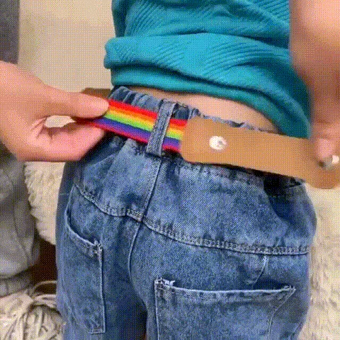 The No Buckle Belt is made of an elastic band and PU material, with fine workmanship. The stretchy elastic belt lay flat on kids’ pants without any buckles digging into their stomachs. It’s an innovative way to secure children's pants.