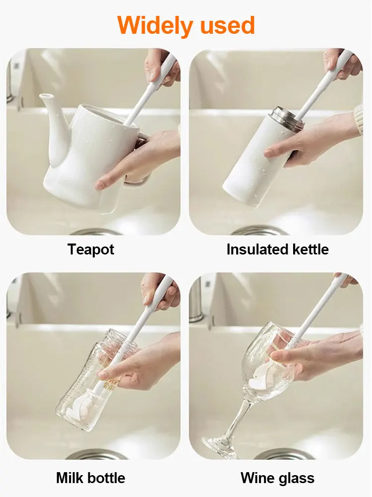 【Long Handle Cup Washing Brush】Reusable and wash easily. just use water and cleaner you can wash its conveniently.