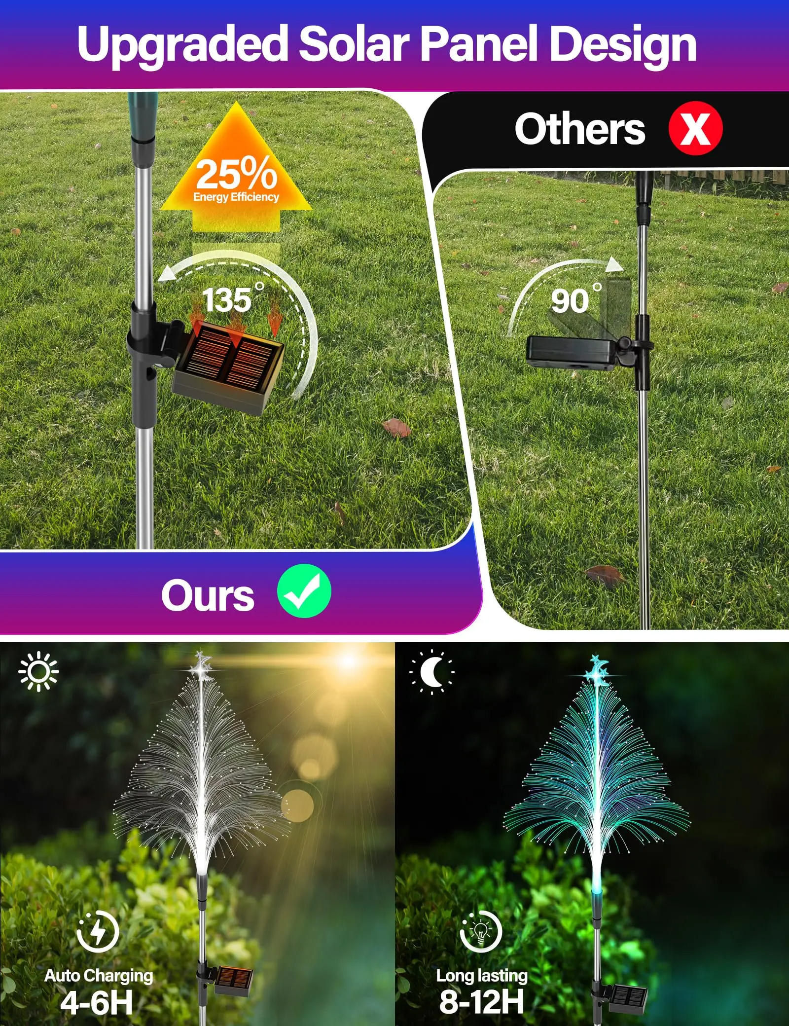 12H long lasting solar tree】: The Christmas decoration outdoor solar light with 600 mAh powerful batteries. Automatically charging for 4-6 hours during the day and lasting for 8-12 hours at night. The decorative solar light for outdoor use has fast charging and long battery life. Keep your garden immersed in a colorful atmosphere all night long.
