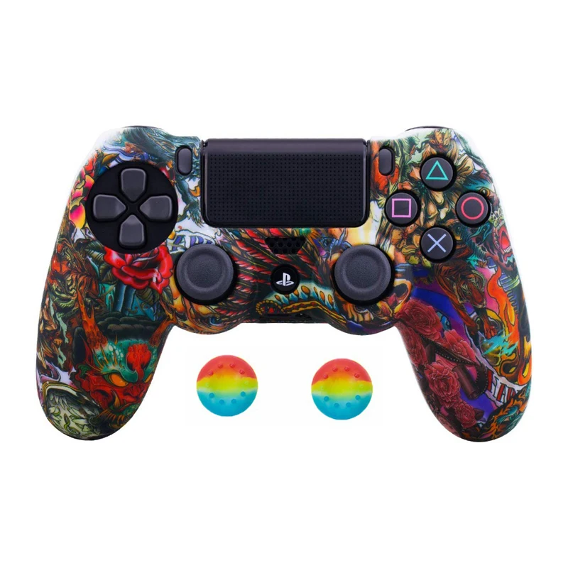 Anti-slip Silicone Camo Protective Skin Case for SONY Playstation 4 PS4 Pro Slim Gamepad Controller Protection Joystick Caps