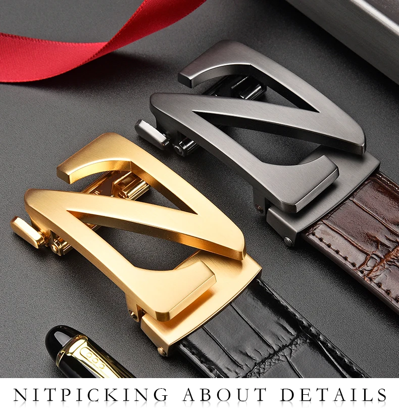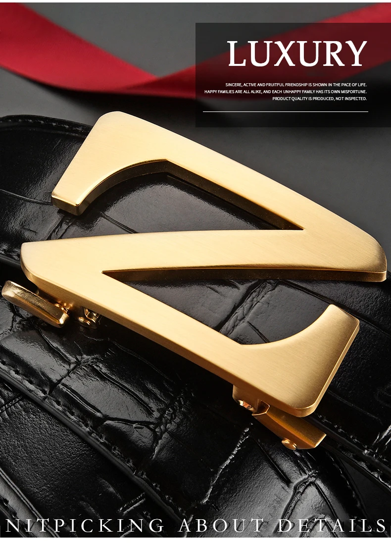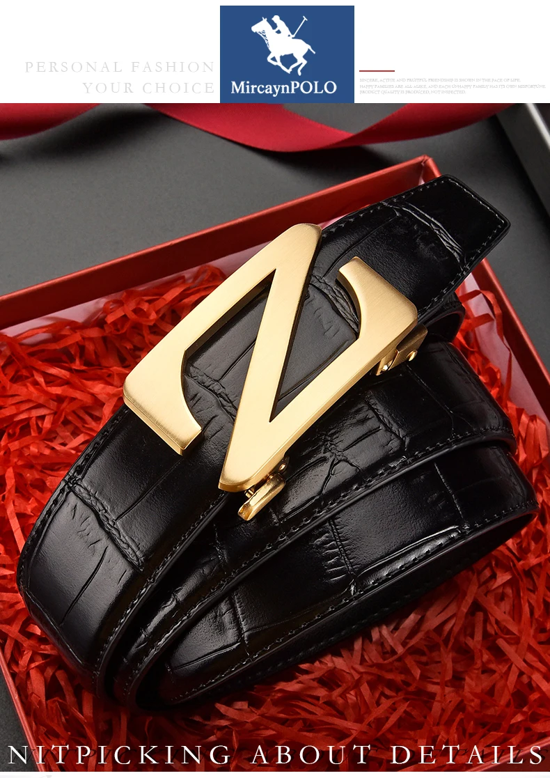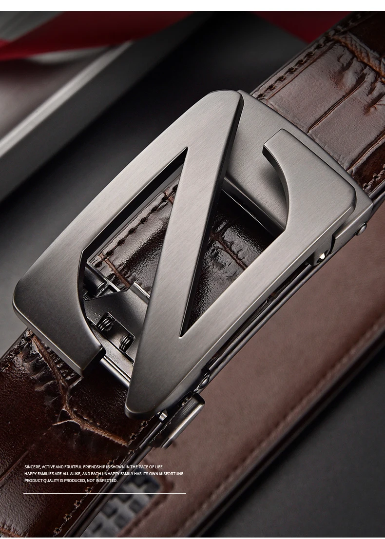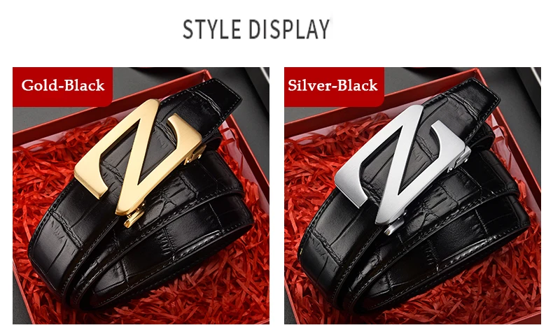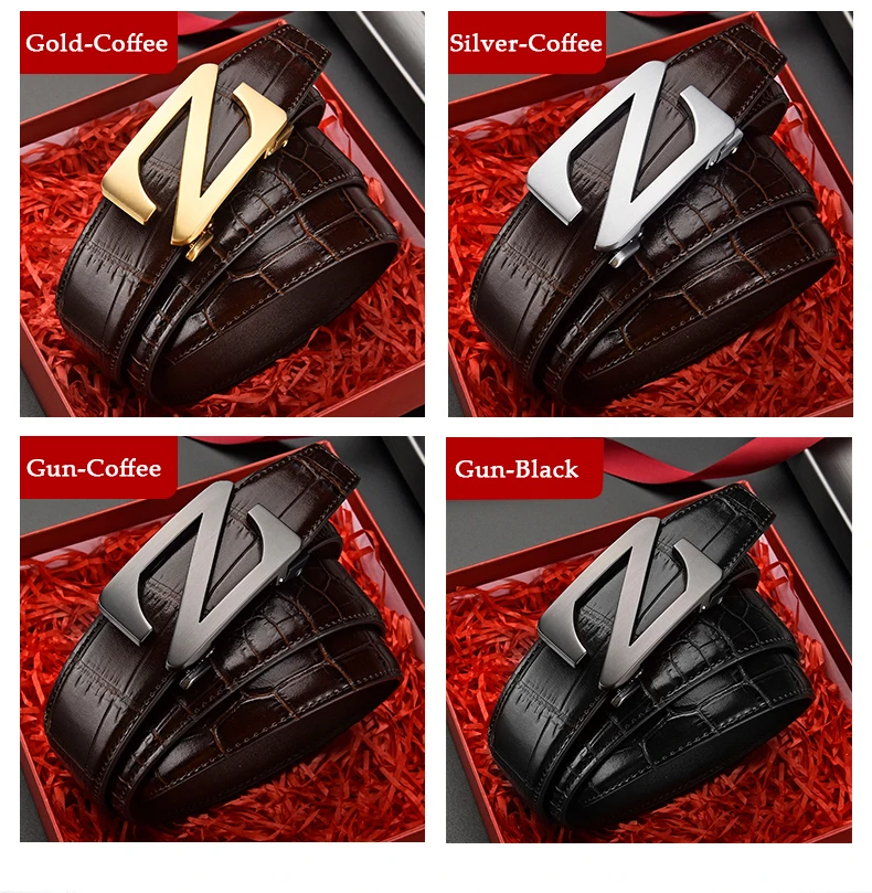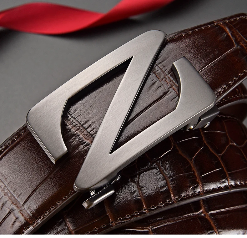 Mens Automatic Zinc Alloy Z Buckle Belts Quality Crocodile Pattern Cowhide Leather Belt Luxury Brand Male Waistband