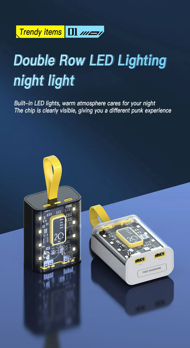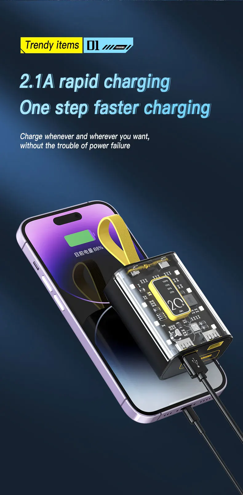 Large capacity, power display, light and comfortable, super fast charge, two-way fast charge.