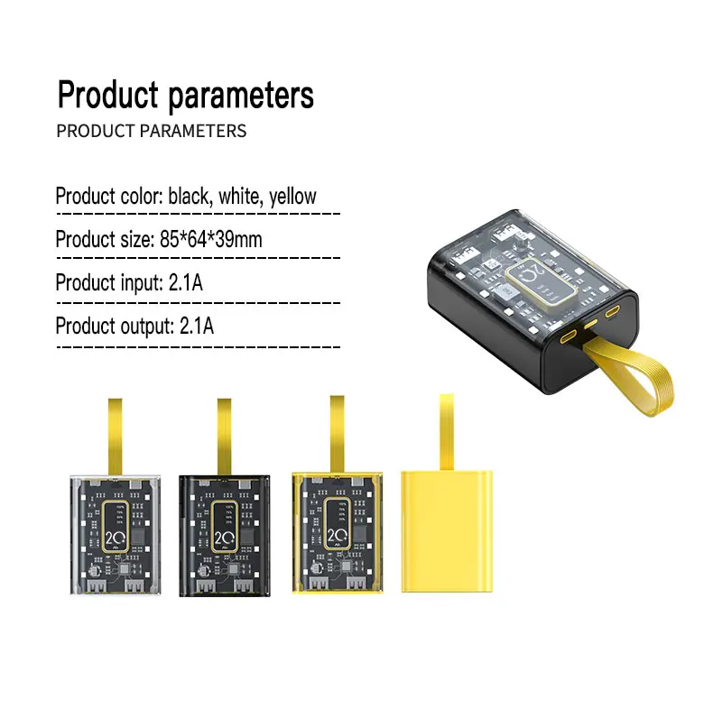 It can charge 2 devices at the same time, equipped with 2 USB port and the input port has 2 ports of Type-c, and Android port. Support 2 devices to charge at the same time, barrier-free sharing.