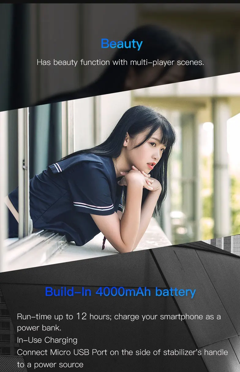 4, When the power supply is low, can also charge the stabilizer