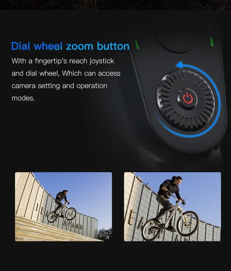 With a fingertip's reach joystick and dial wheel, Which can access camera setting and operation modes.