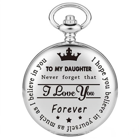 Package includes: TO My Daughter Quartz Pocket Chain Watch × 1 (Includes Gift Box)