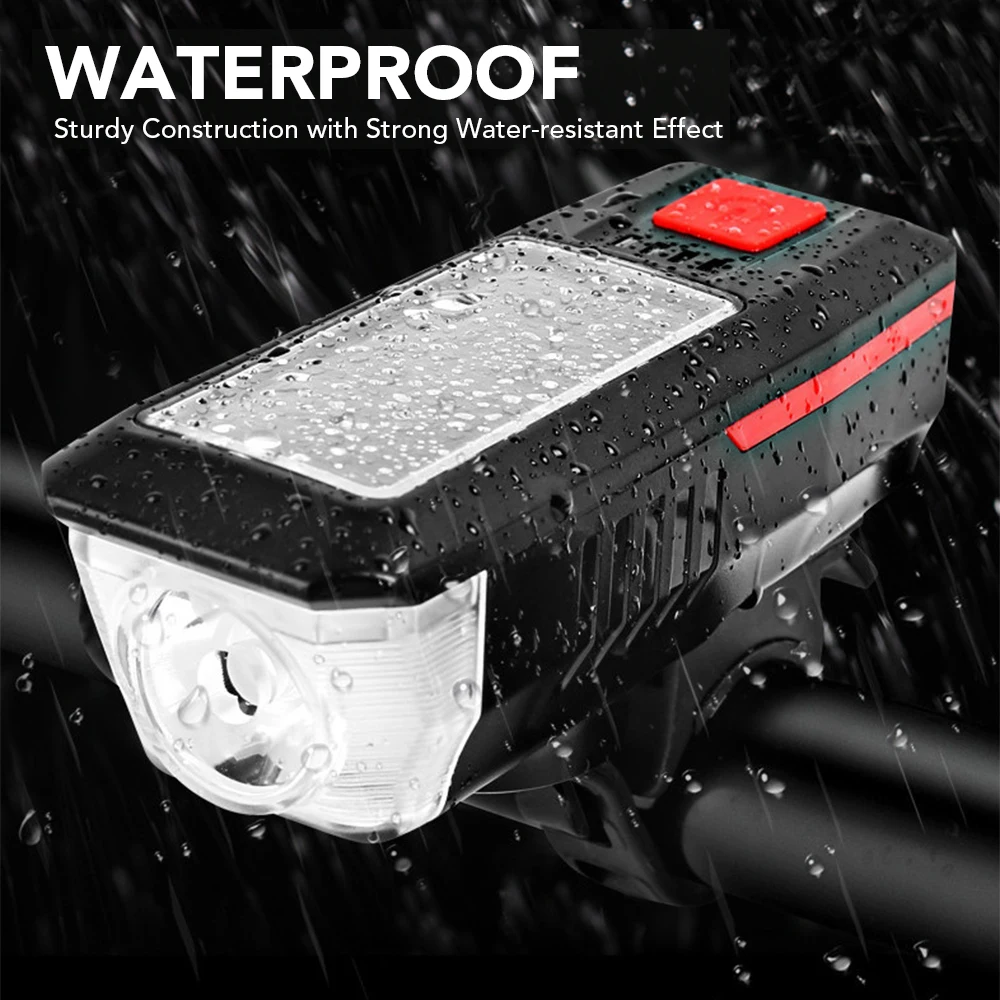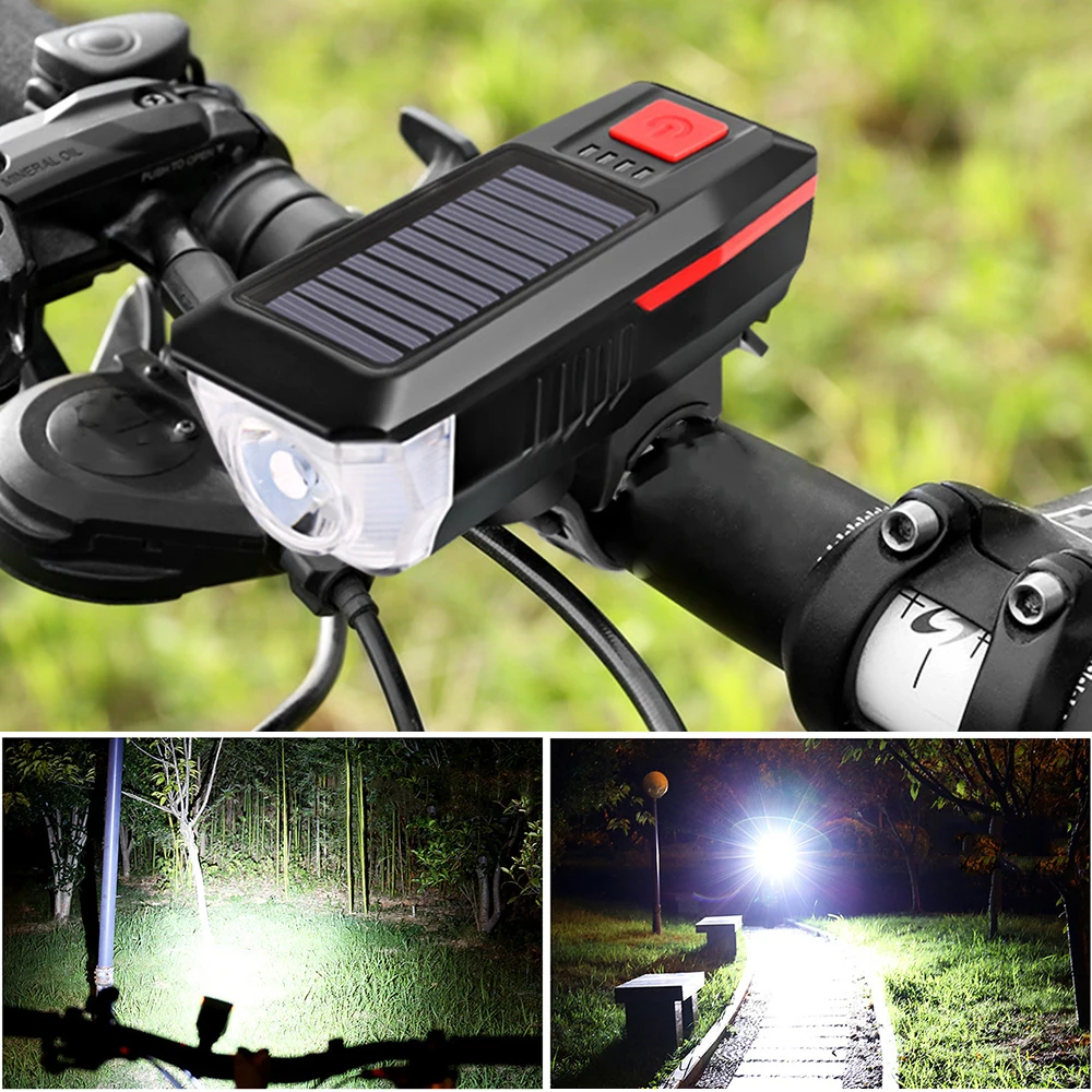 Solar Bike Light USB Rechargeable Double Charging Horn Lamp Waterproof Bicycle Headlight Bike Front Light Waterproof + Horn