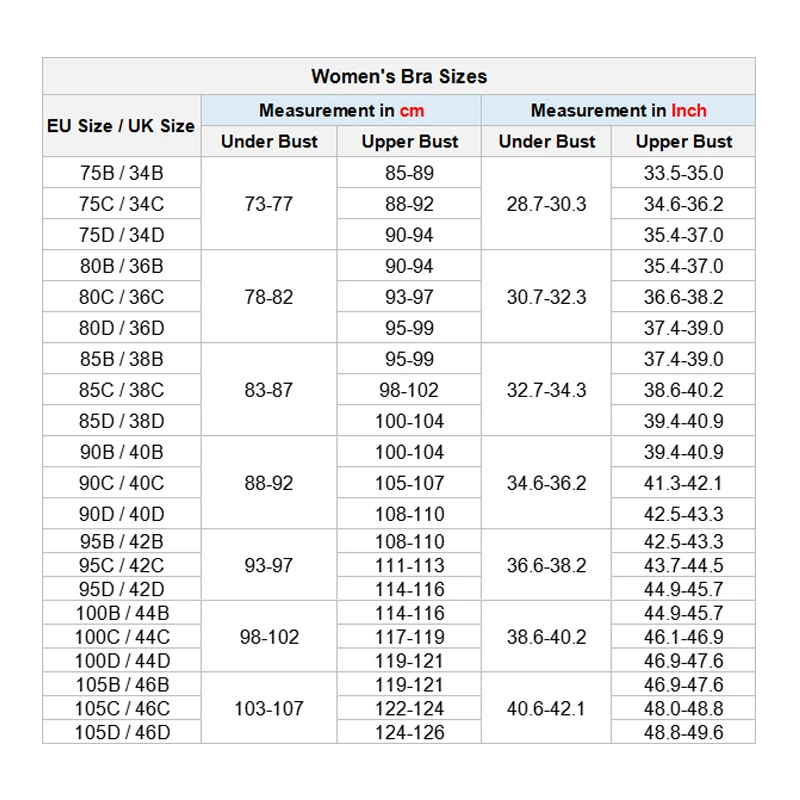 If you don't know the size of your bra, you can order it according to the size chart at first(Size Chart for USA, Australia, Europe).