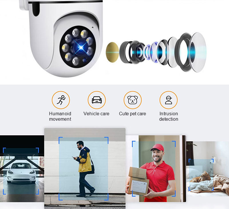 5. Motion detection, automatically track moving objects, record moving paths, and support remote voice intercom.