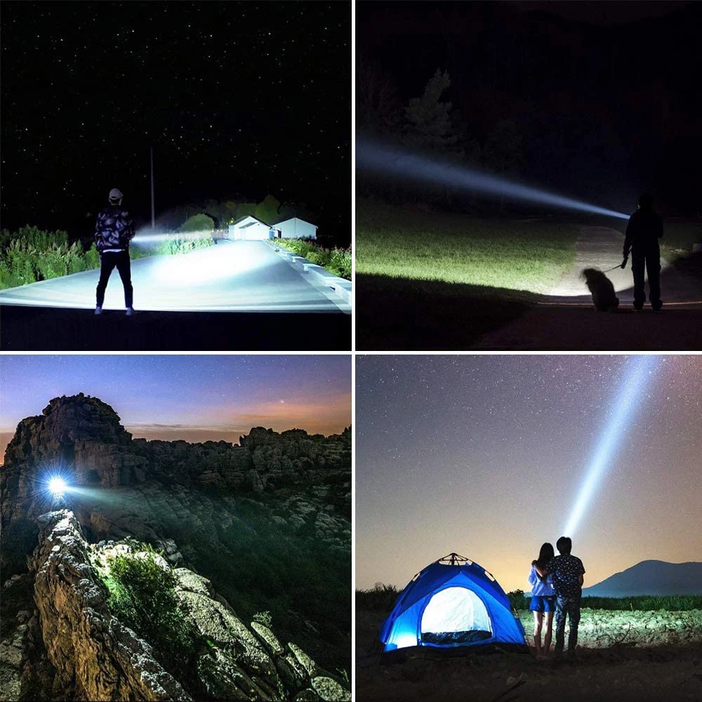 Super durable&portable: Refuse to use inferior materials. Our high power flashlights made from tough, impact resistant military-grade ABS material and aluminum alloy can protect the system from drops and bumps while in use. It is a perfect lighting tool for hiking, camping, sailing or hunting.