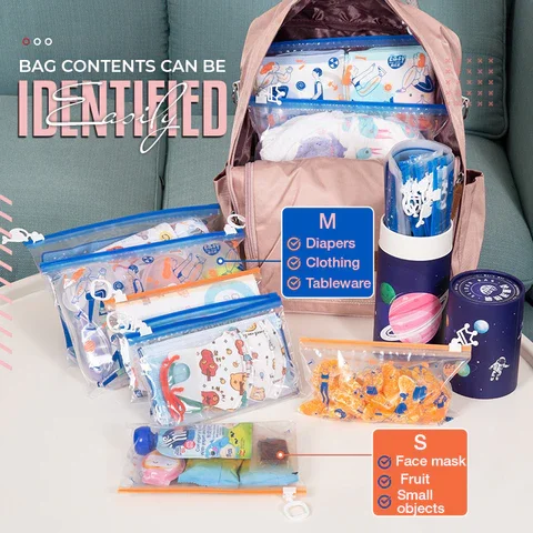S: Can store snacks, baby food supplements, pacifiers, spoons, headwear, skin care products, ID cards, Lego puzzles, etc.