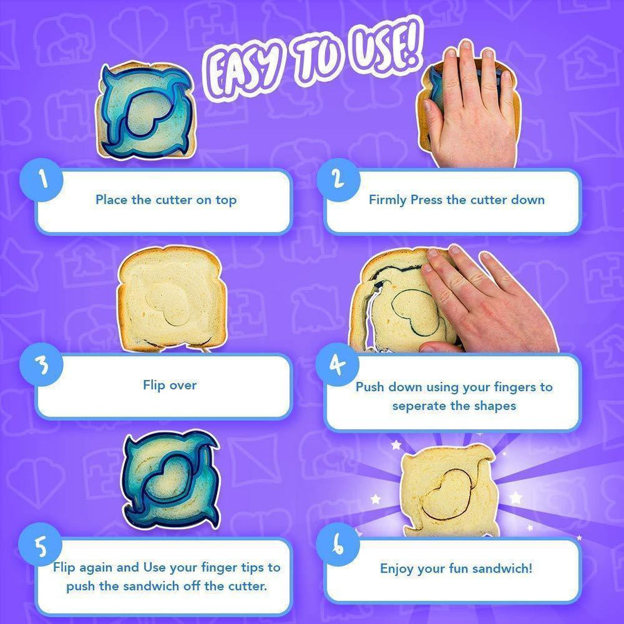 Simply press the cutter down on your sandwich, and your child's favorite sandwich will be ready!