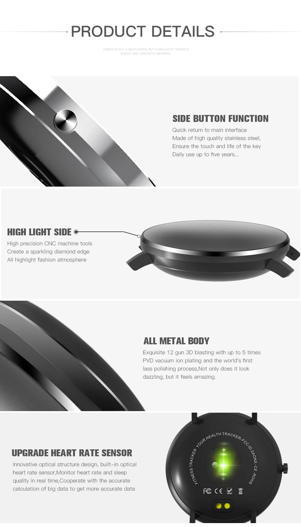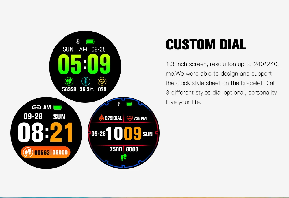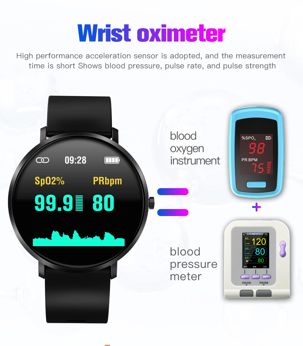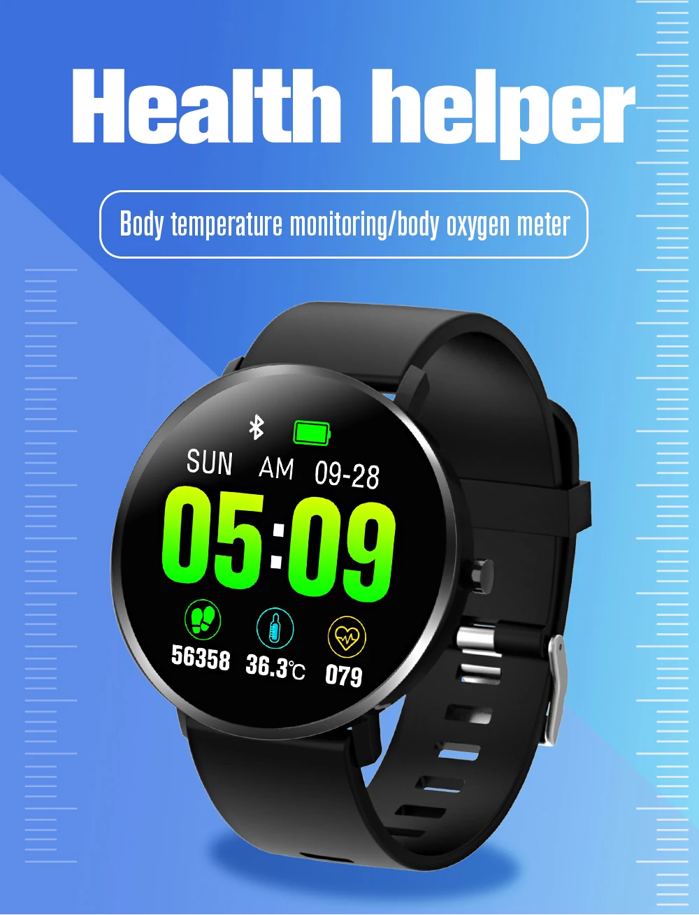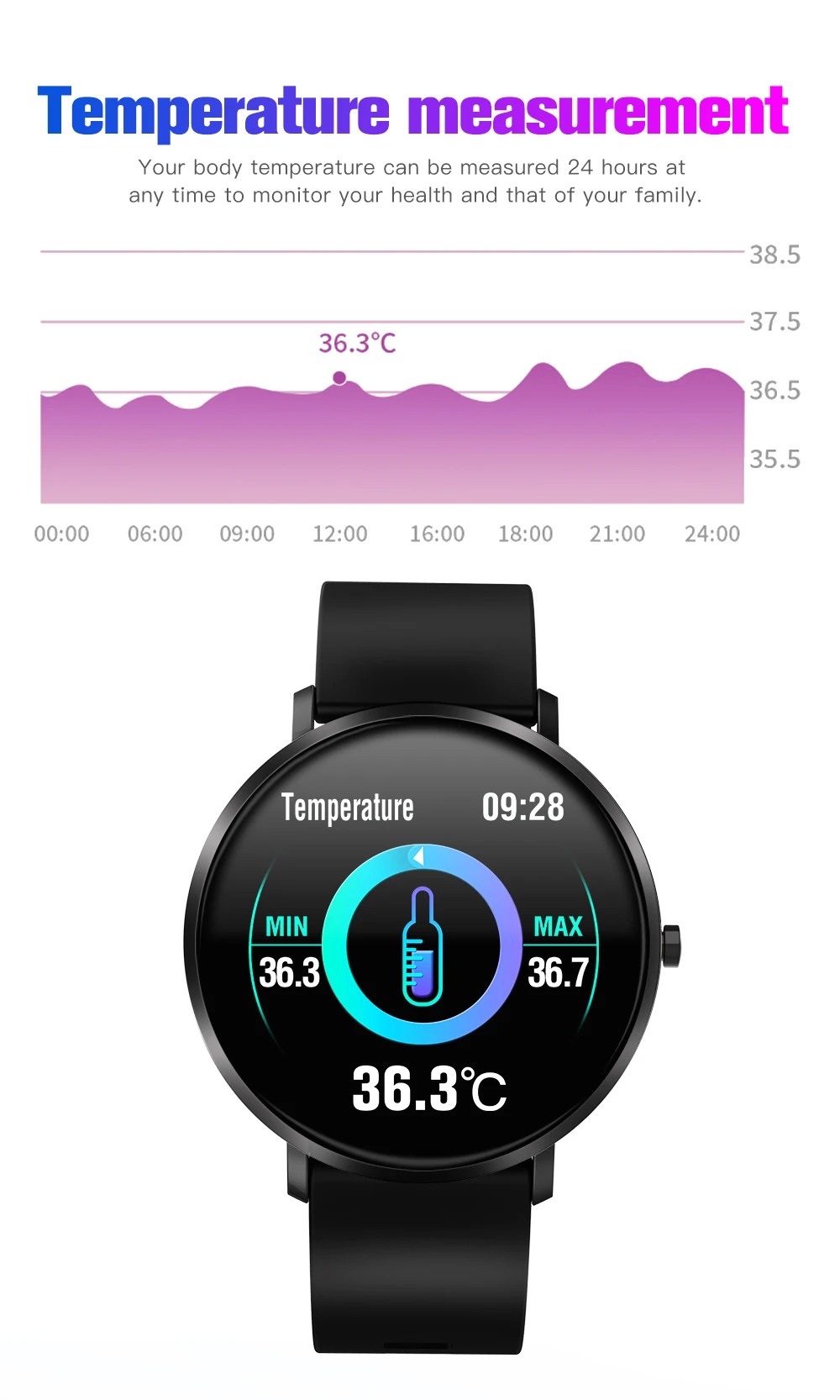 | Main function | Temperature,Heart rate monitoring, blood pressure, blood oxygen, step, distance, calories, multiple exercise mode, sleep monitoring, call alert(call number/name), information alert, music control, weather forecast, alarm clock alert, loss alert, sedentary reminder, raised wrist screen, Remote camera, etc.. | |