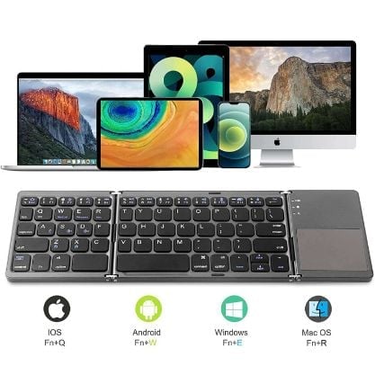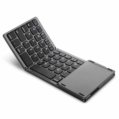 The Bluetooth Portable Keyboard combines a portable and foldable design to facilitate comfortable typing thanks to its large touchpad,