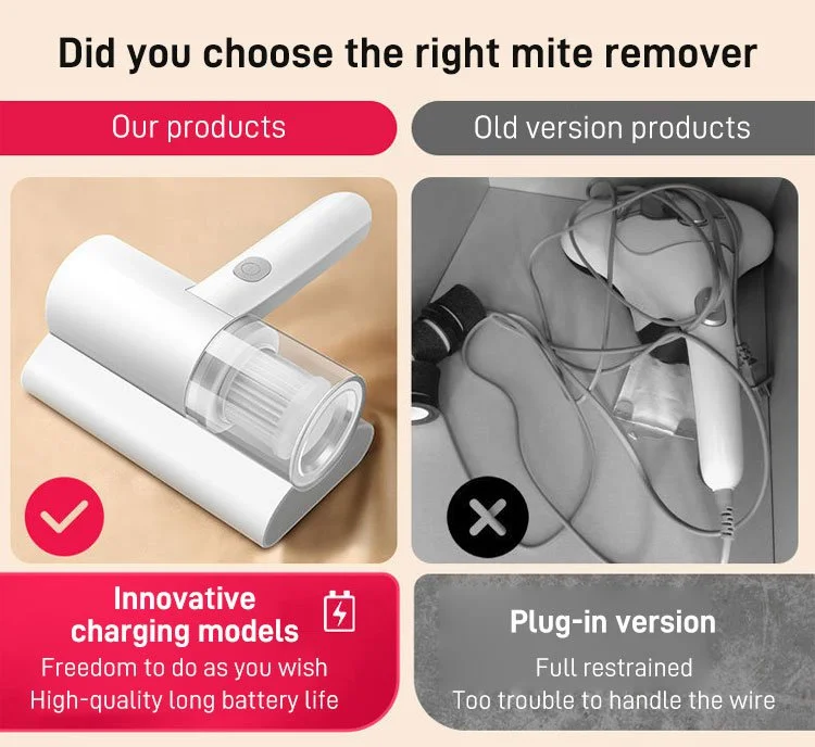 1. One Machine Dual Use: One button switch, ready to use, mite removal+vacuum cleaner.