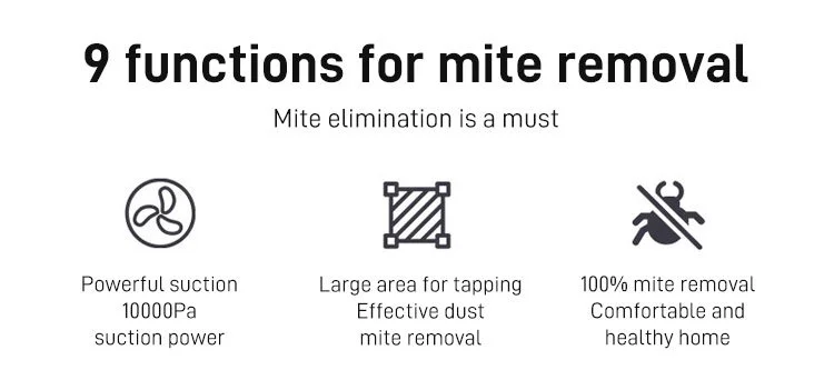 2. Effective Mite Removal: Super strong killing effect on mites and bacteria, as well as the effect of inhibiting mites. Strong power, dust removal and residue free.