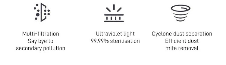 3. Multi Filtration: UV, multi filtration system, filtering out clean air, with higher cleaning efficiency. The mite removal device can meet the daily cleaning needs of the home, and can be used in multiple scenarios to clean every corner.