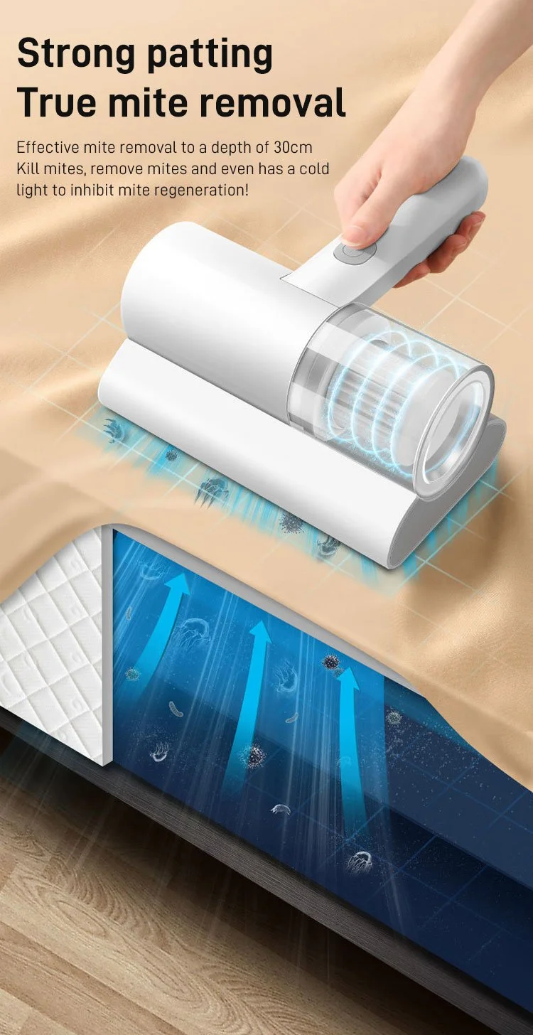 The bed vacuum cleaner adopts the two-in-one function of strong suction and violet light penetration, combined with the research of customized U-shaped strong violet light tube, the irradiation intensity is greatly enhanced. It makes cleaning more convenient and thorough.