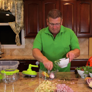 This manual hand crank food chopper contains 5 sharp blades that cut all kinds of ingredients. All the materials are food grade.