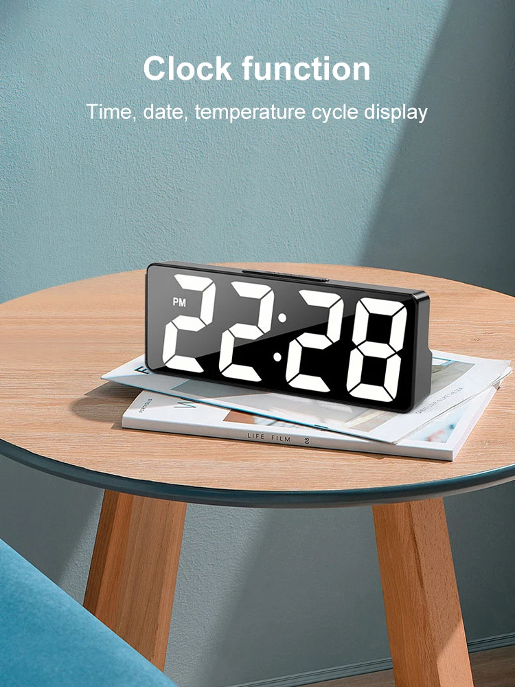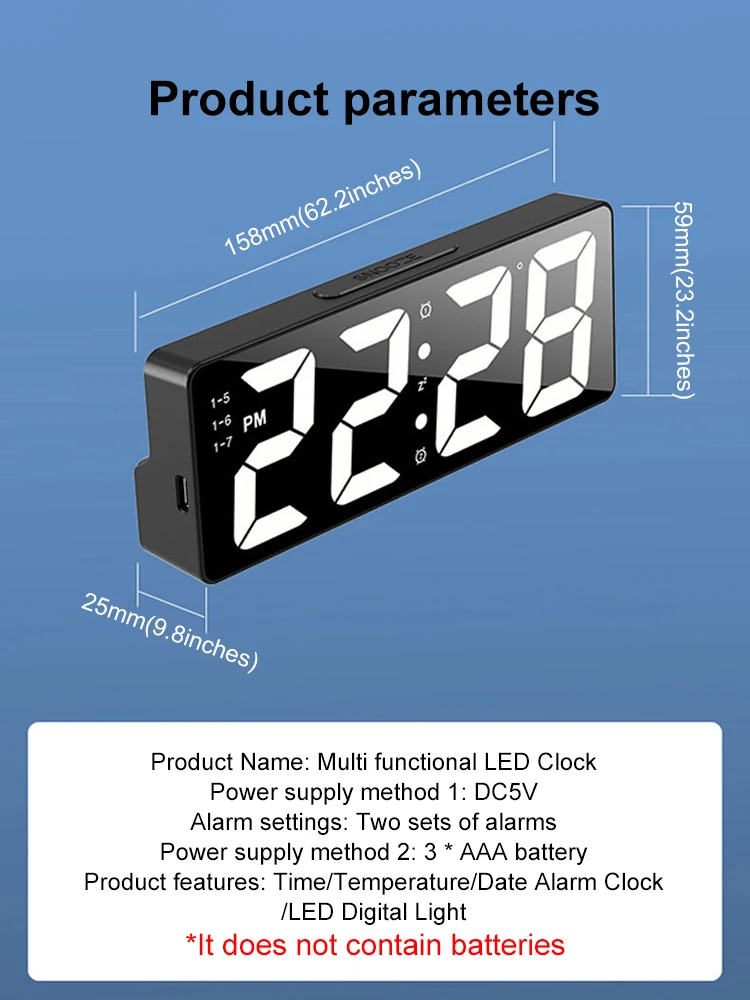 1.LED digital clock, two display modes, one is only time display, the other is time, date, temperature cycle display.