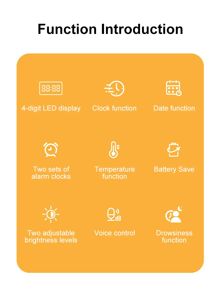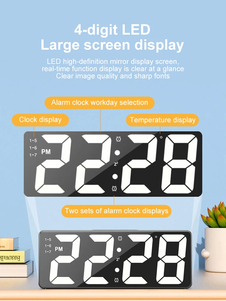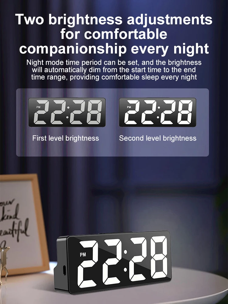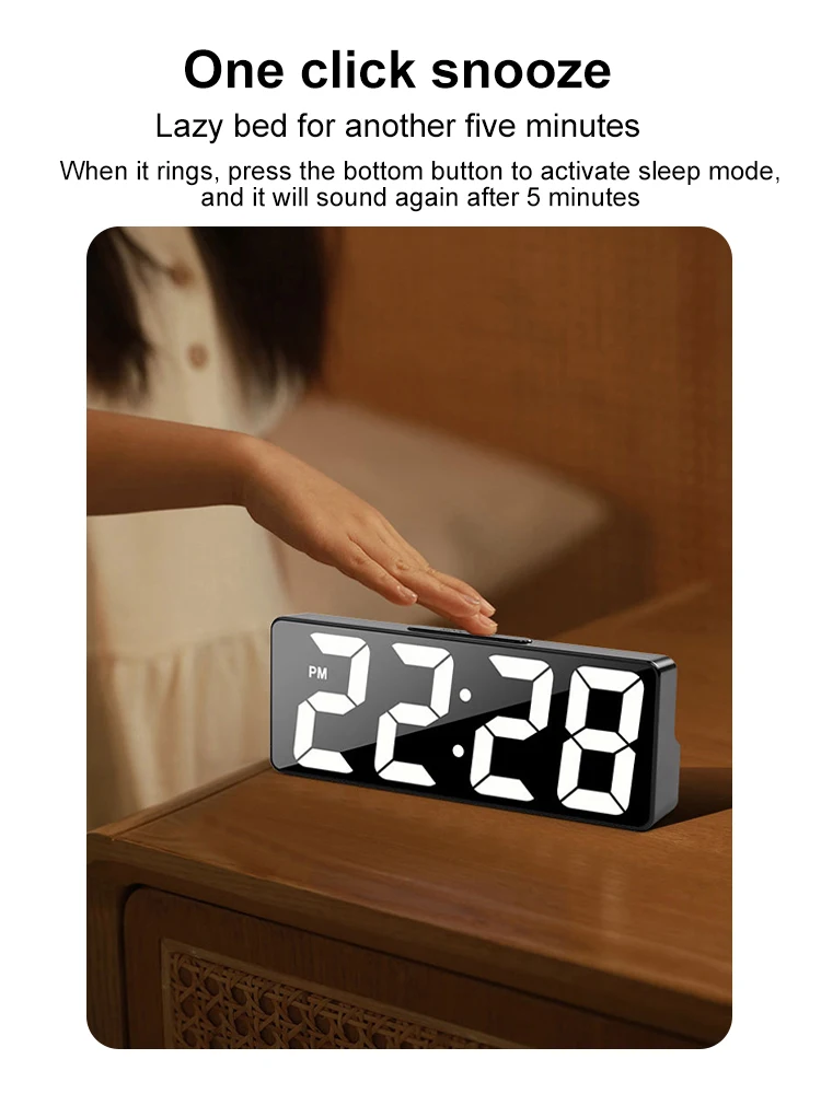 4.Two sets of alarm clocks with snooze function, even if you turn off the first alarm clock, you will not be afraid of being late.