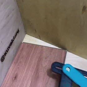 Step 1:Slide the two plastic feet into the corner of the wall and align them with the wall.