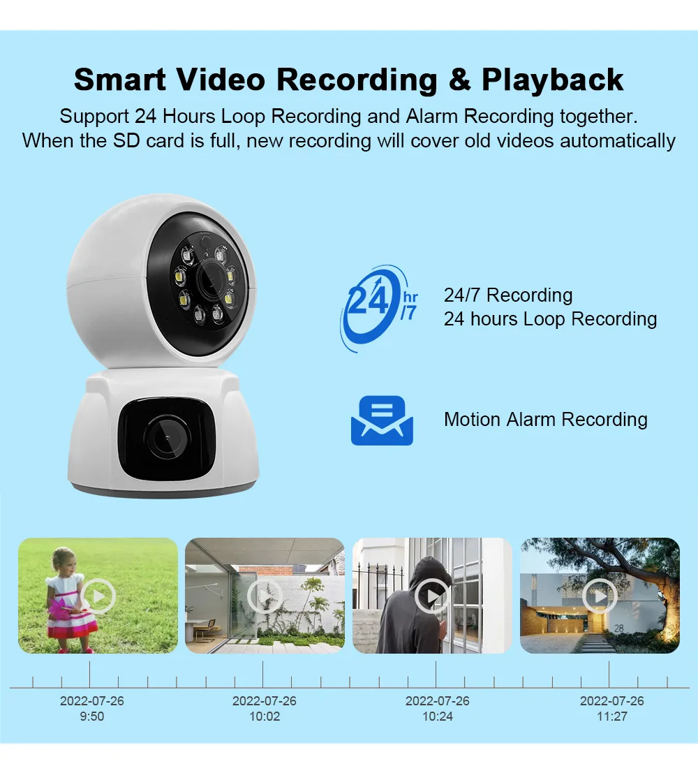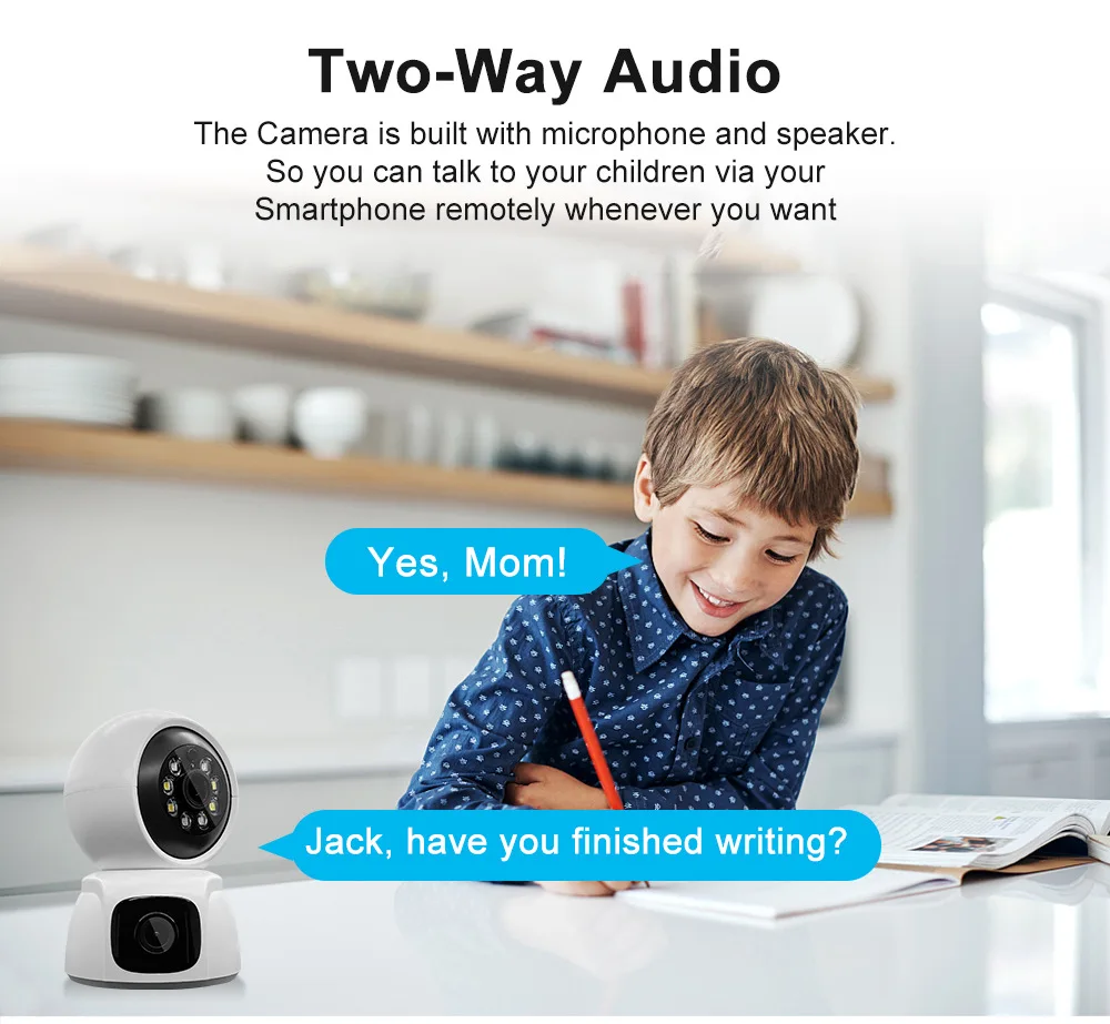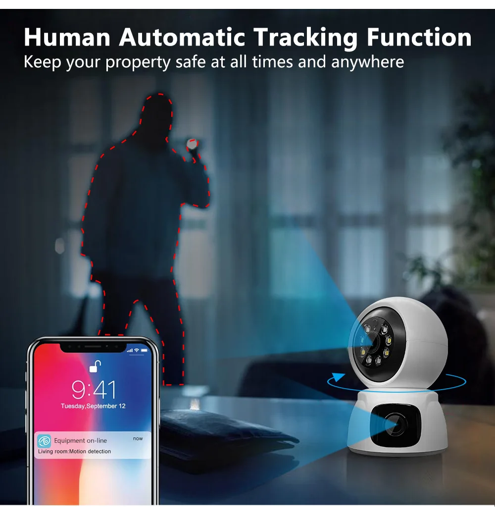 2K 4MP WiFi IP Camera Dual Lens Dual Screen Baby Monitor Home Office Wifi Security Camera PTZ Auto Tracking CCTV Video Surveillance