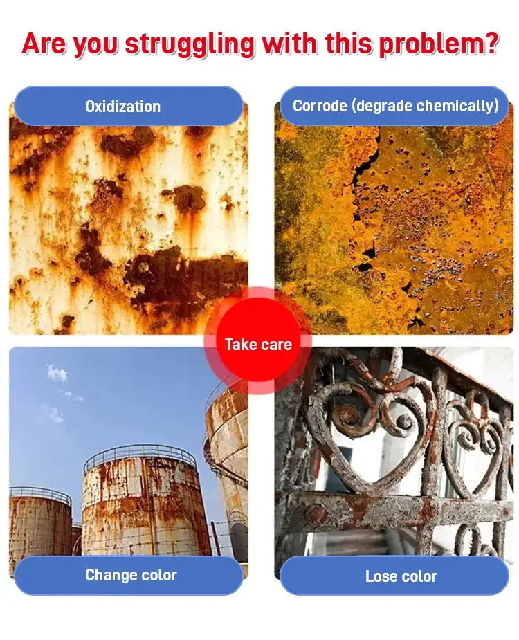 Don’t worry! Our Water-based Metal Rust Remover and Metallic Paint will help you solve the problem easily. The easiest-to-apply, fastest drying rust converter,buy with metallic paint, to get a new decoration in the most affordable way!