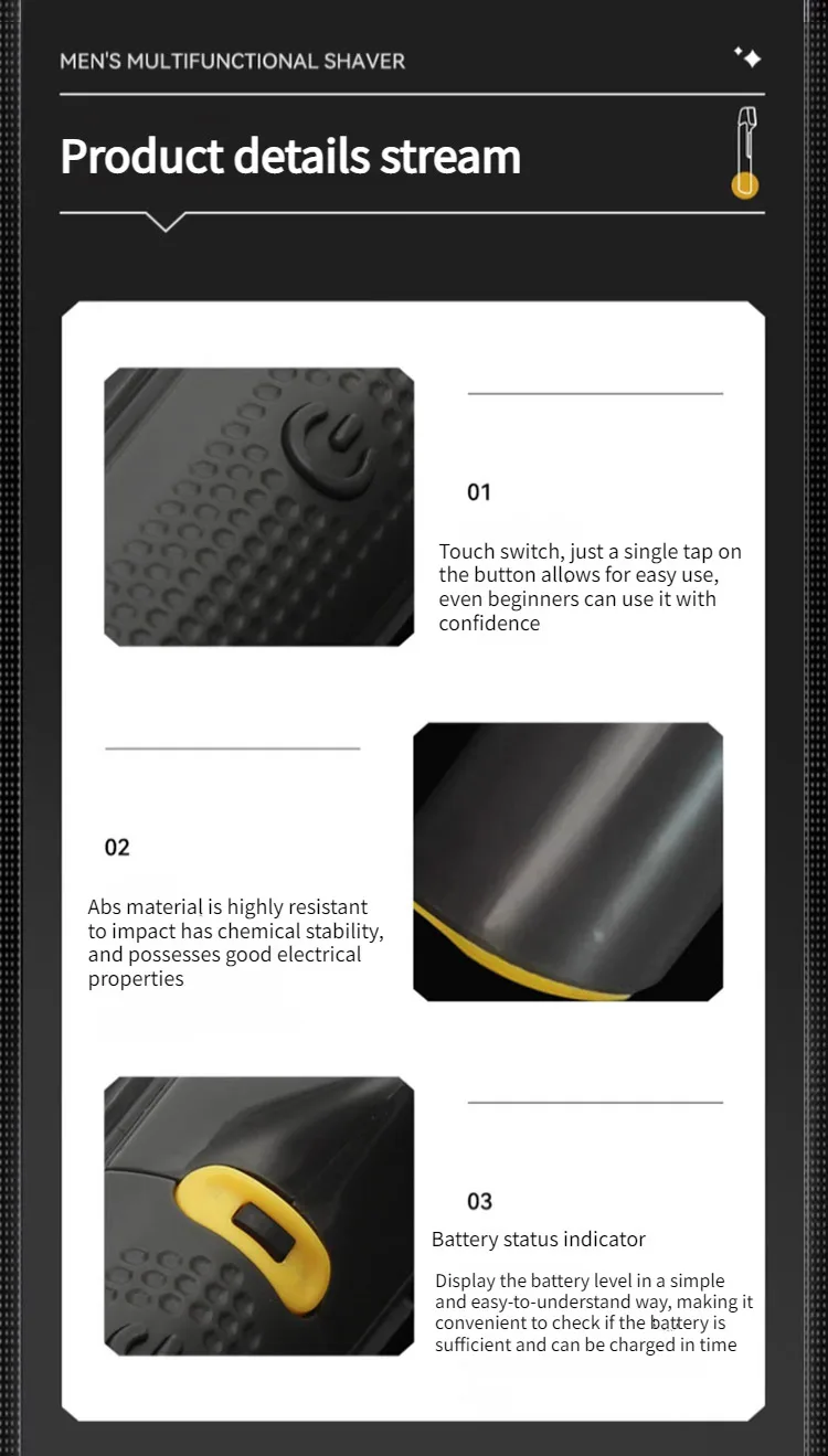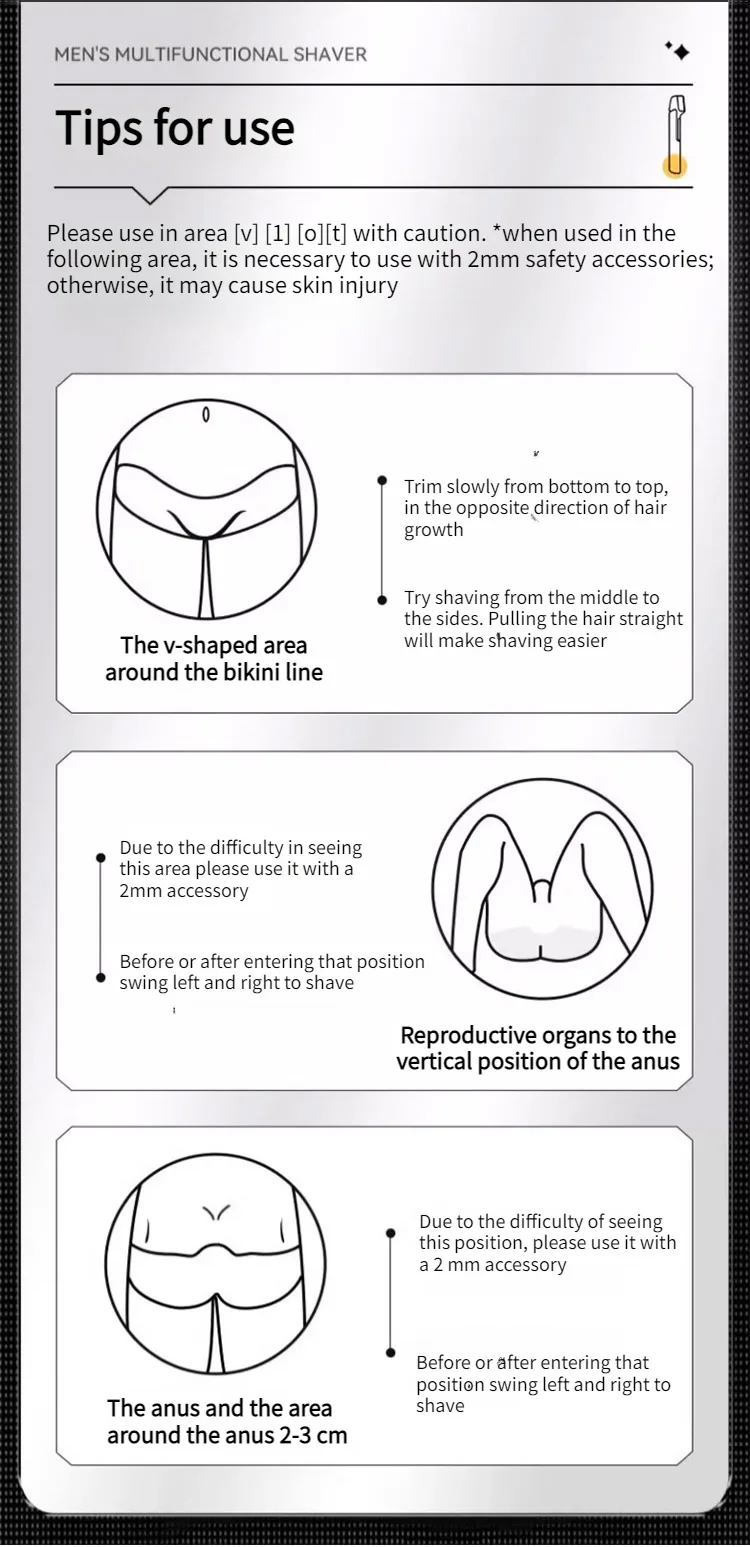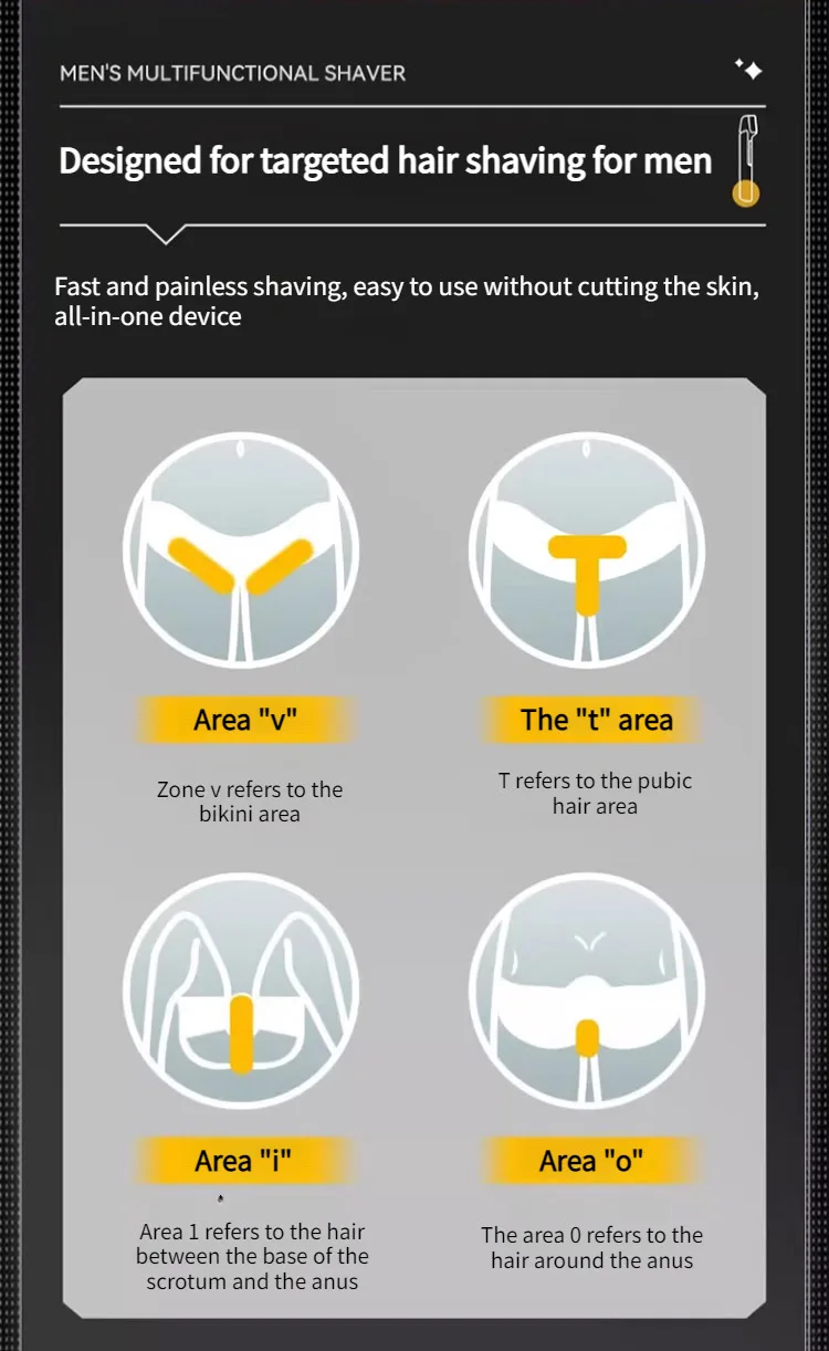 Designed for targeted hair shaving for men.Fast and painless shaving, easy to use without cutting the skin, all-in-one device.