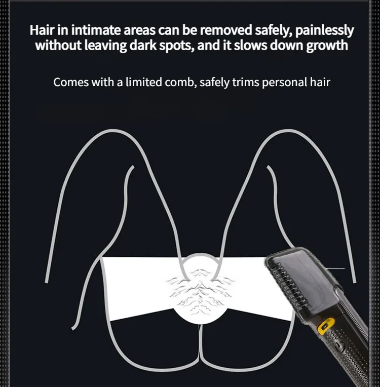 Hair in intimate areas can be removed safely, painlessly without leaving dark spots, and it slows down growth,Comes with a limited comb, safely trims personal hair.