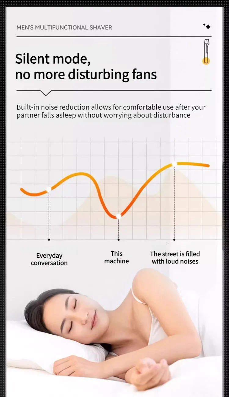 Silent mode,no more disturbing fans.Built-in noise reduction allows for comfortable use after your partner falls asleep without worrying about disturbance.