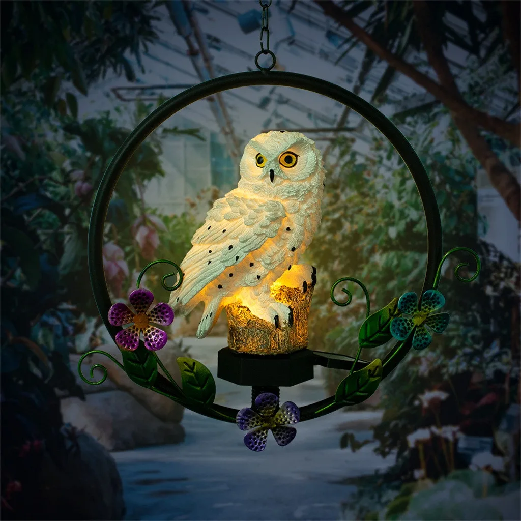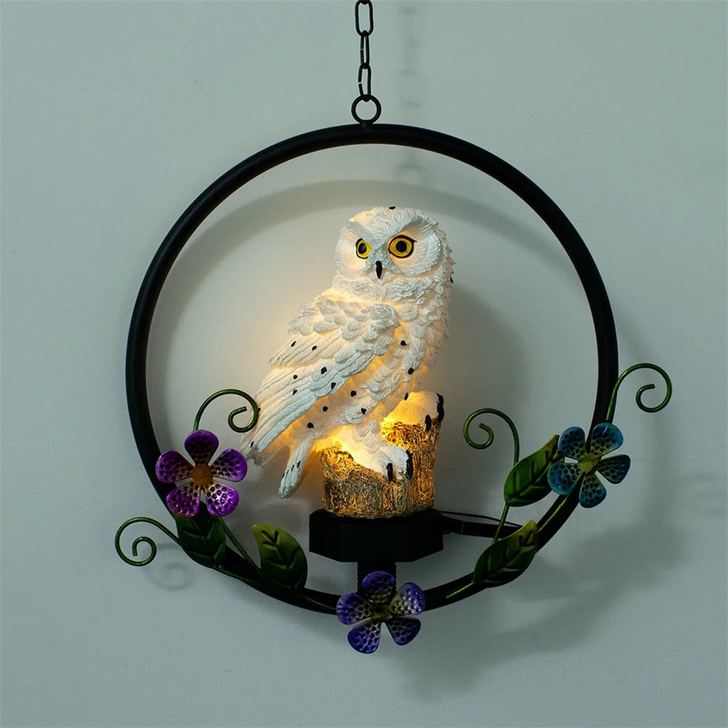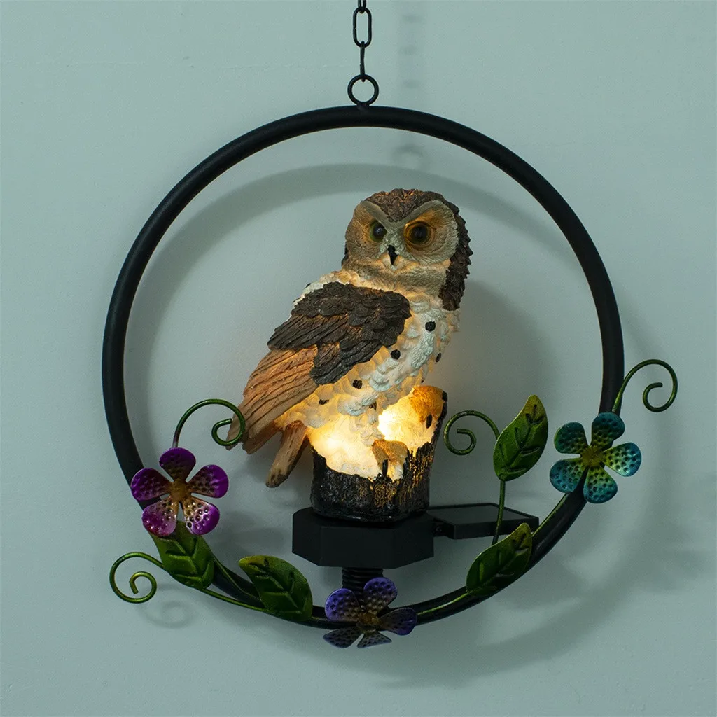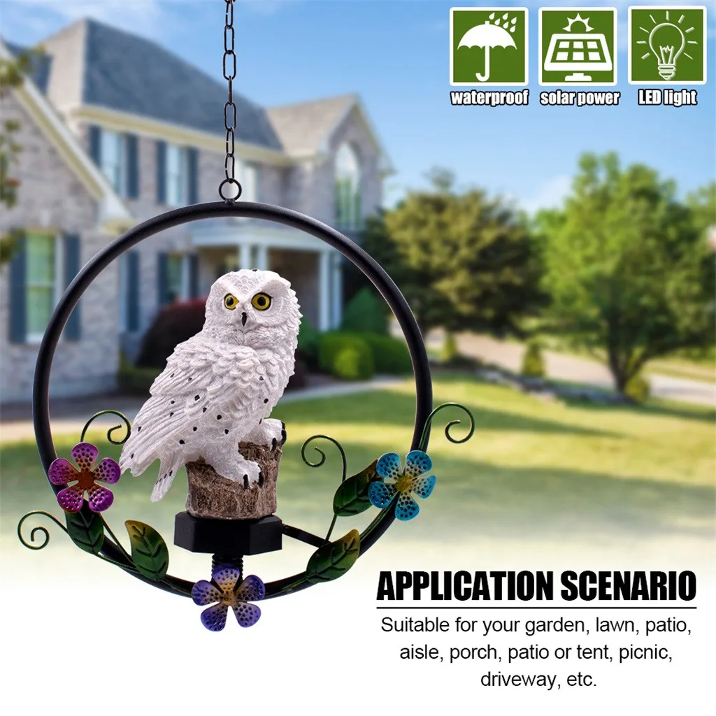 Bird Animal Simulation Sculpture Light IP65 Owl Garden Solar Lamps Resin With Hook Art Crafts Desktop Ornaments Home Decorations