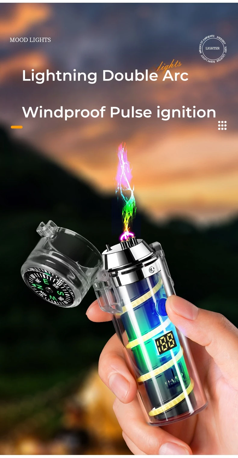Lightning double arc, windproof pulse ignition. Essential outdoor equipment.