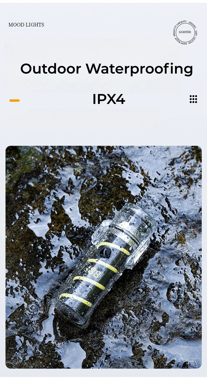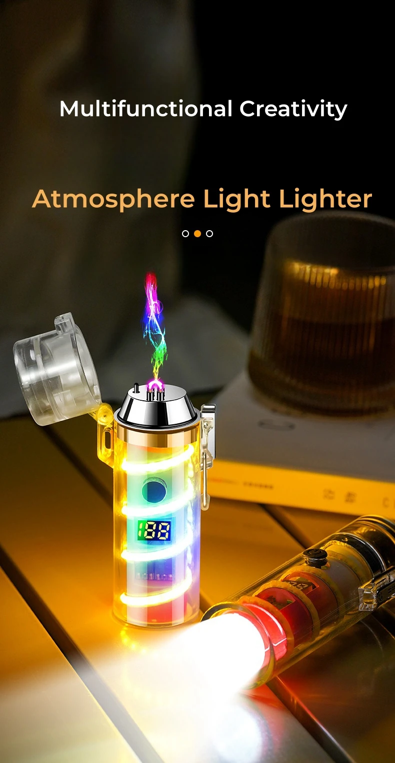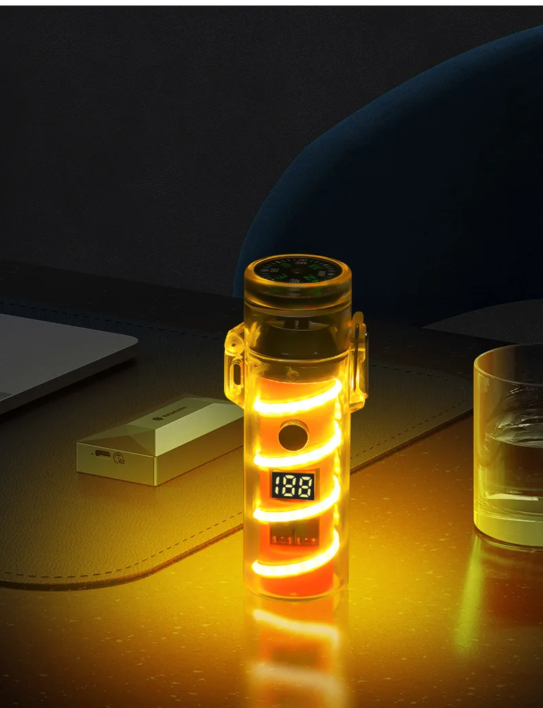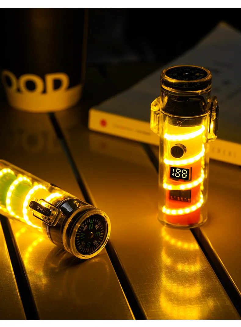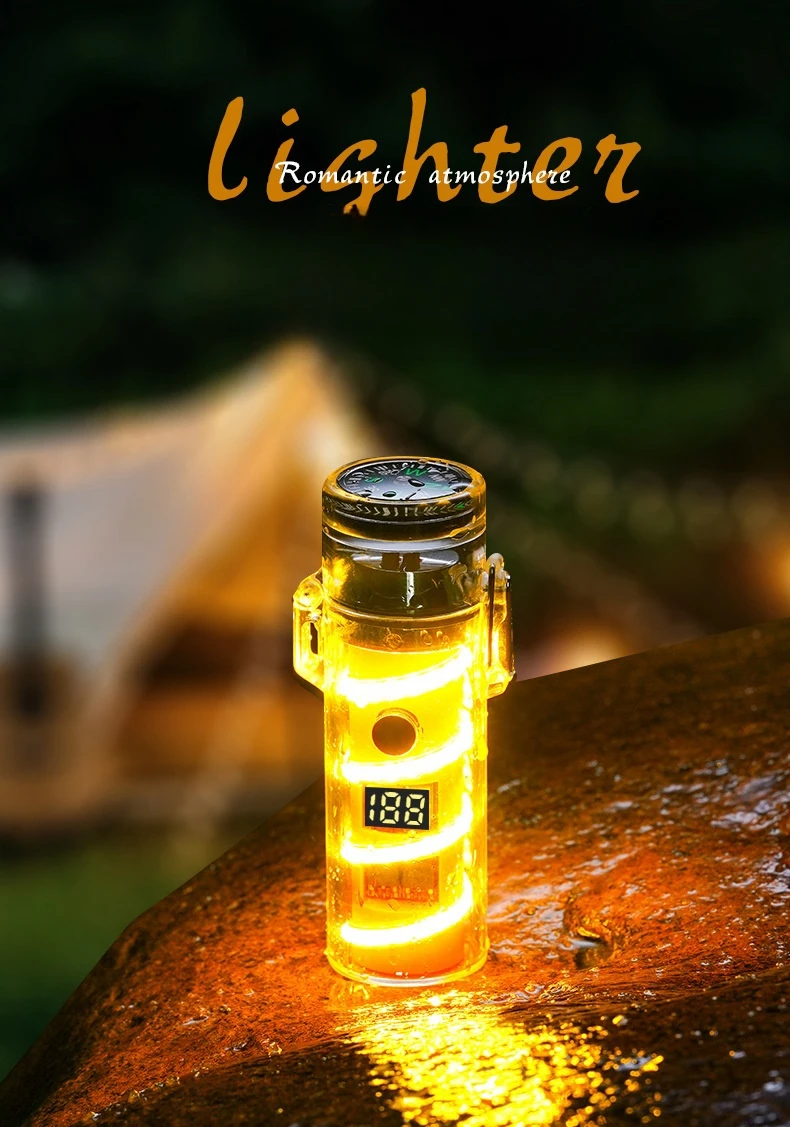 100W Multifunctional Outdoor Waterproof Flashlight Light Lighter Transparent Case with Compass Charging Lighter Fantasy Atmosphere Light
