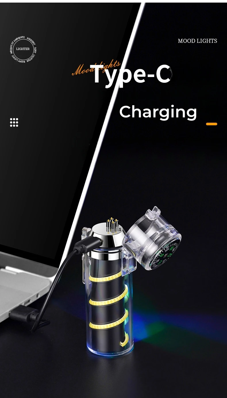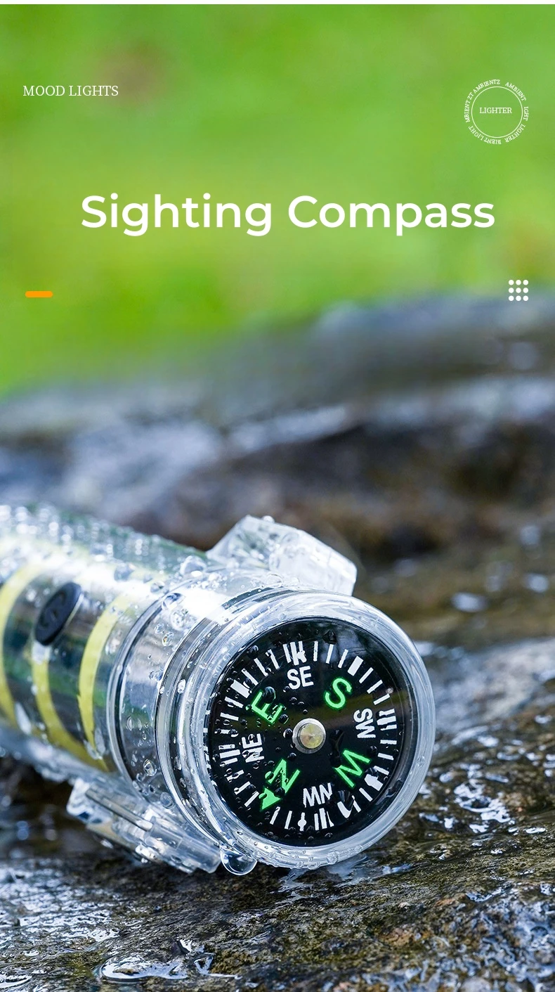 Outdoor accompanying ambient light. Multifunctional lighter flashlight compass.