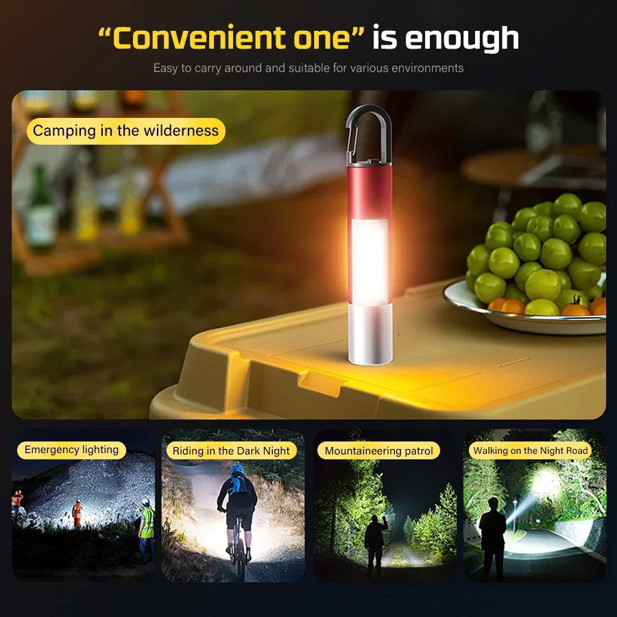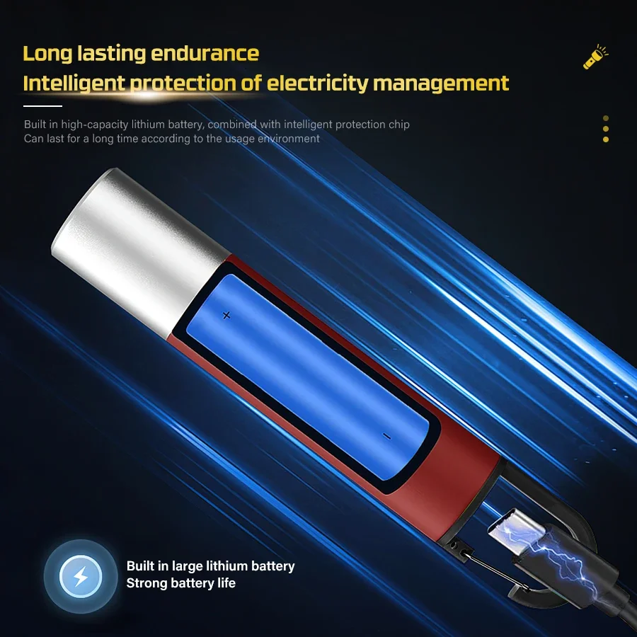LED flashlightis lightweight and compact.Length: 5.91 In,Diameter: 1.3 In;Weight: 5.67 Oz. The small size fits perfectly in your hand. It fits easily in a pocket or backpack wherever you go.