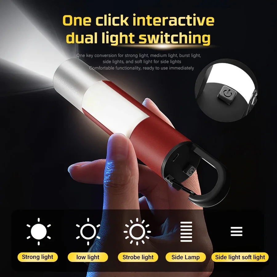 Using imported GT10 high-power lamp beads, with the measured brightness up to 20000 lumen. Click the power button to switch between three levels of brightness(Low light/Medium light/Highlight)and Sidelight mode.Easy to cope with in different situations. The lighting/emergency function can be switched freely, helping you cope with different situations in time.