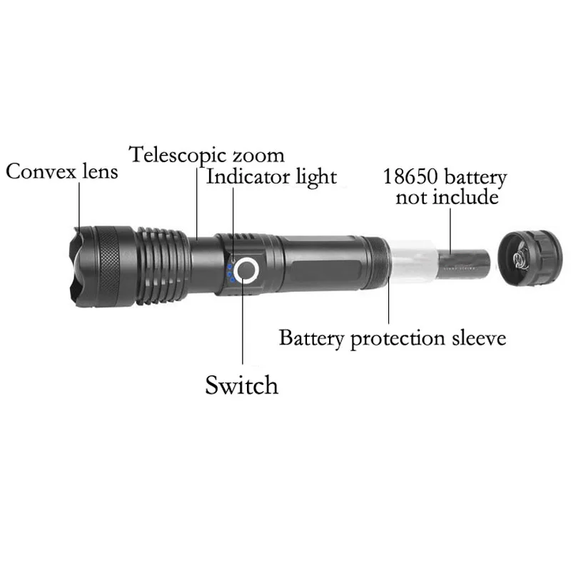 [High Power Brightness] -- XHP70 lamp beads makes our flashlight 10 times brighter than old incandescent flashlights. Easily light up an entire room or focus in on objects up to 500 meters away!