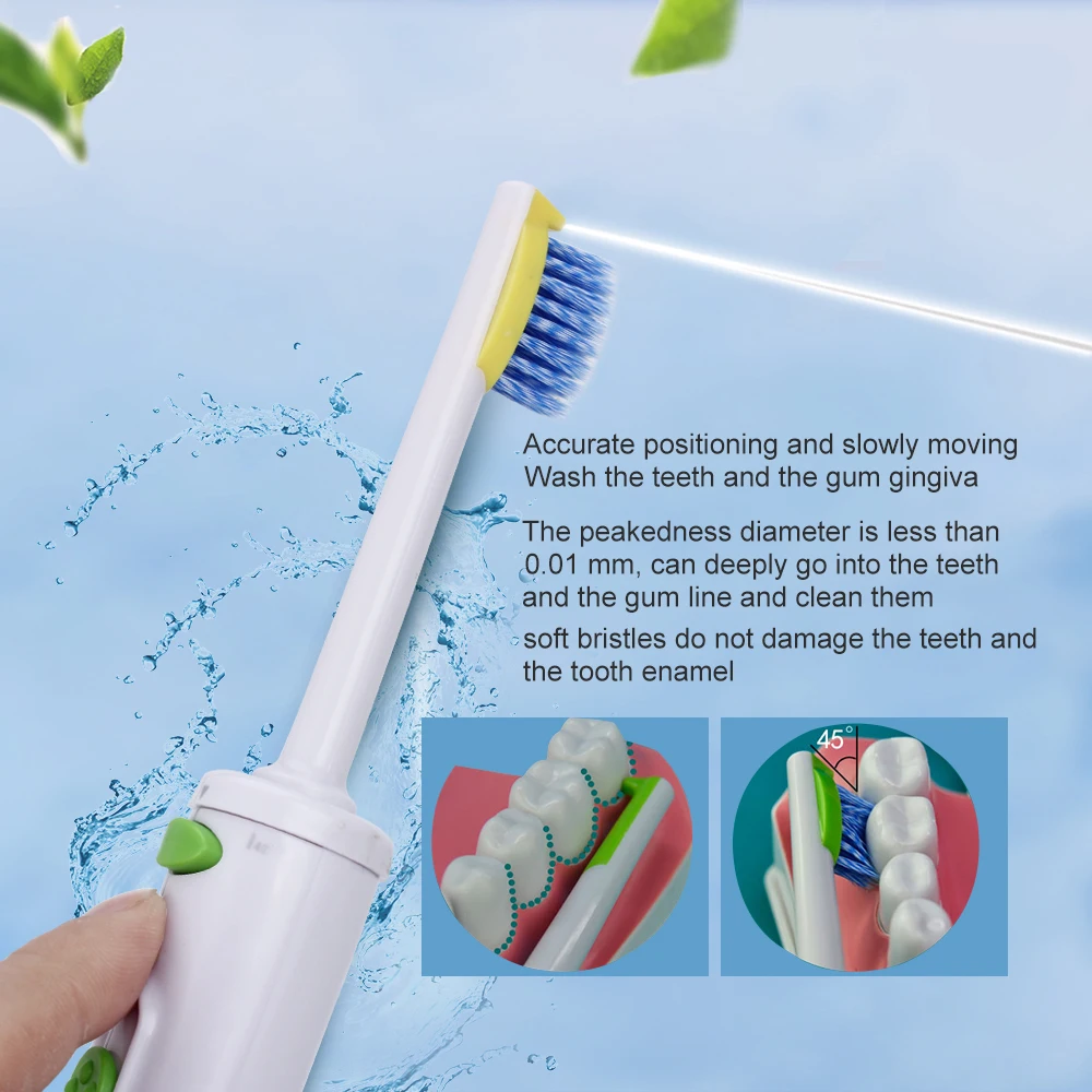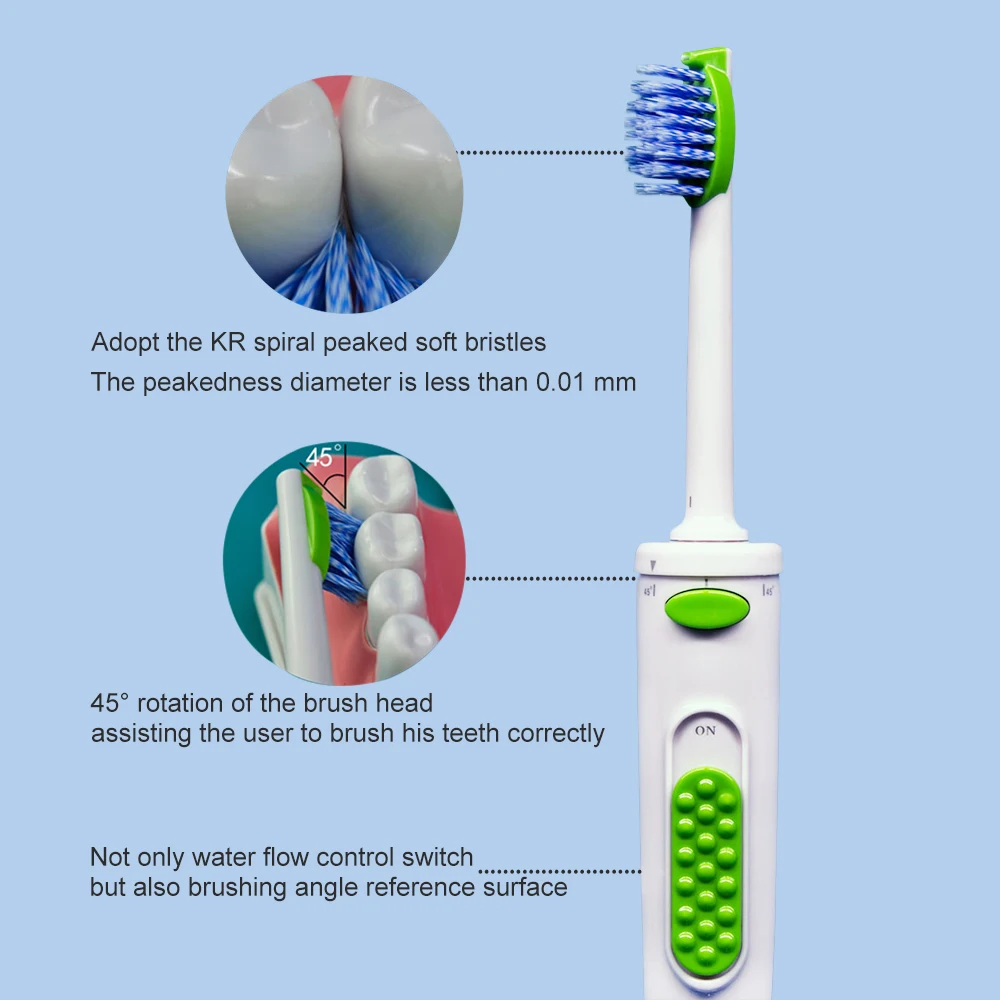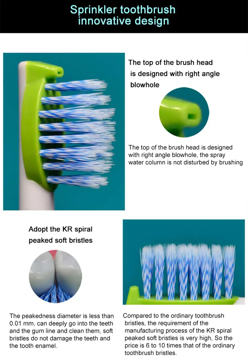 Brush your teeth in the morning and evening with brush head and rinse the teeth after meals with sprinkler