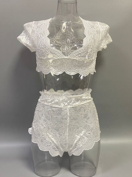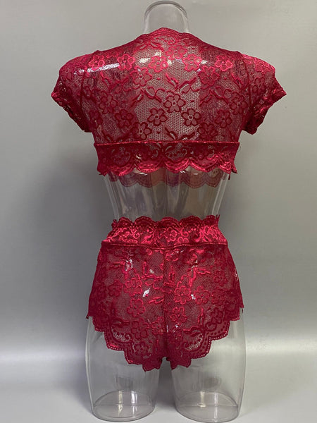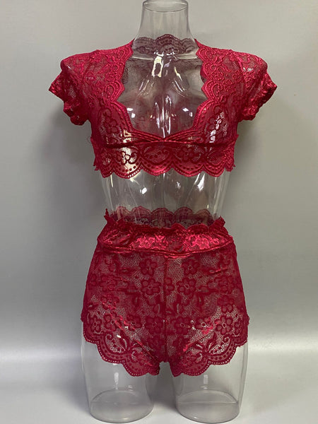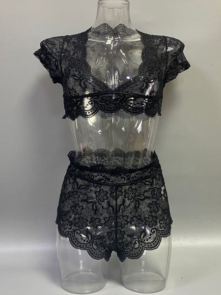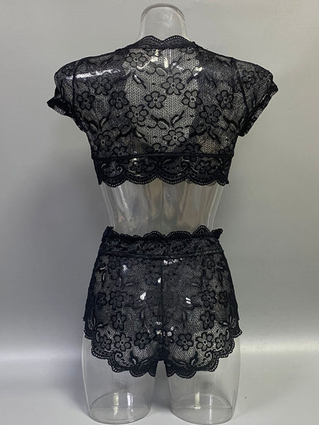 Lace Perspective Sexy Lingerie Suit Short Sleeve Shorts Homewear Two-piece Set