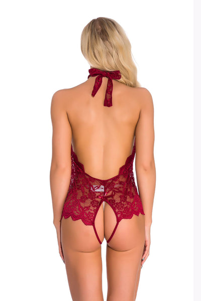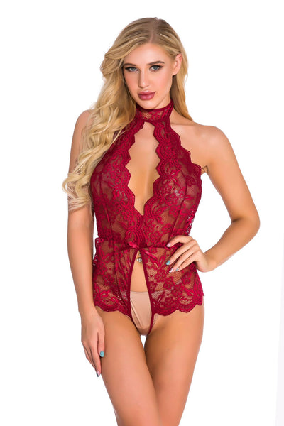 Sexy Temptation Elastic Underwear Lace Embroidery One-piece Open Crotch Hollow Back Strap Sexy Corset,Red